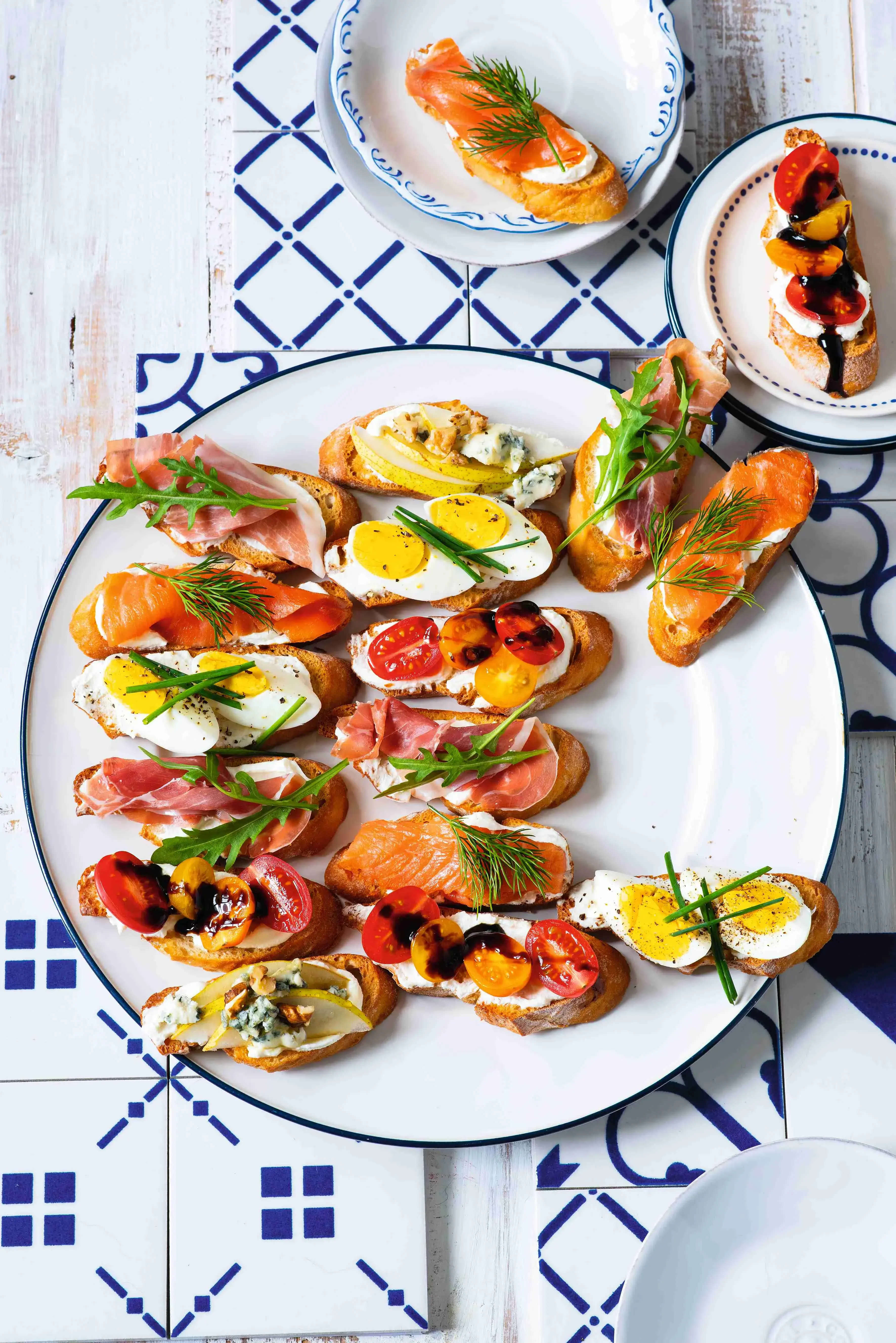 Party bez chlebíčků a jednohubek? Nikdy! Čím barevnější a chuťově pestřejší, tím lépe. Naše crostini zadání splňují na výbornou. Základní pomazánka z ricotty a krémového sýra je chuťově jemné, takže je skvělým podkladem pro výraznější ingredience.