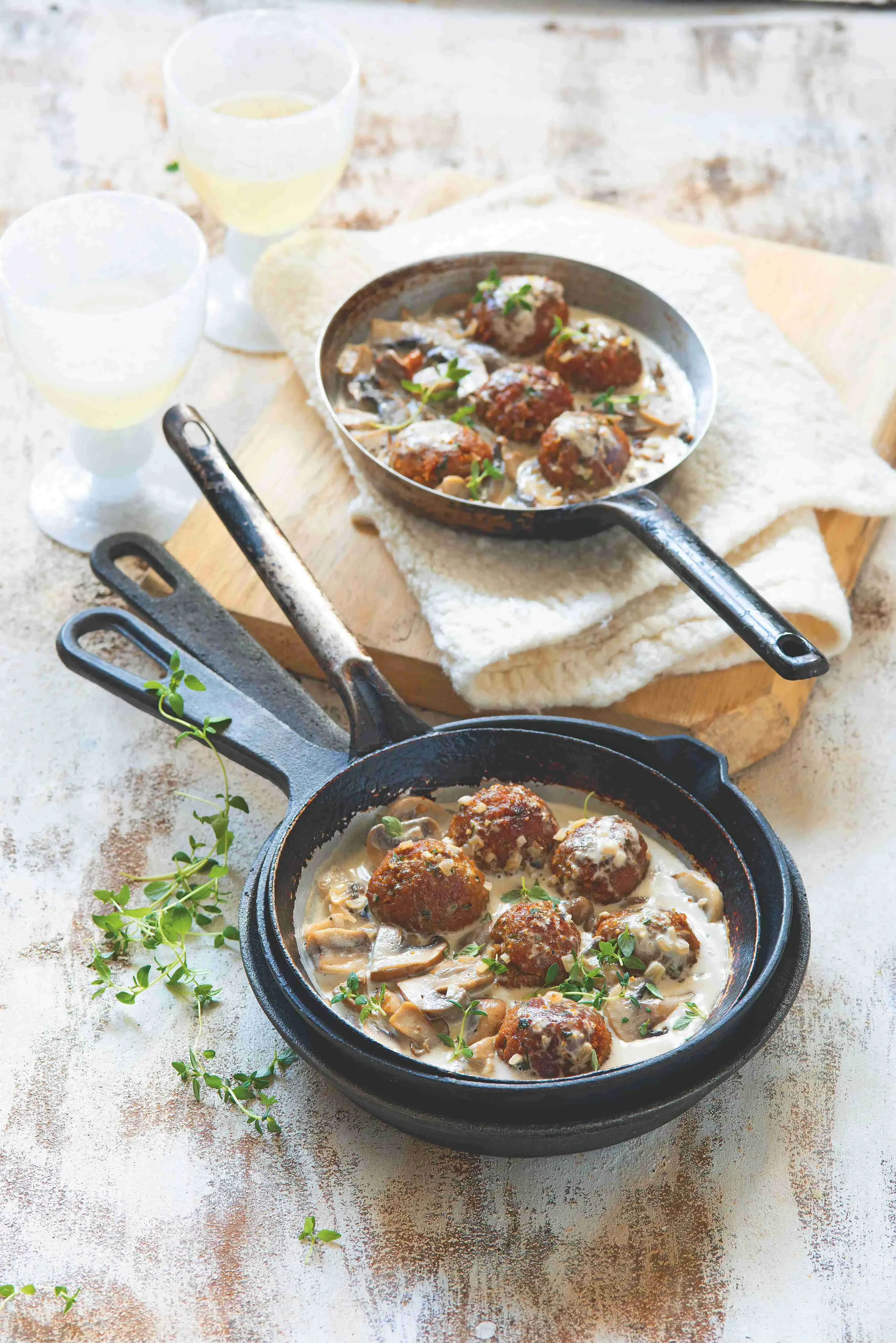 Kuličky z veganského nemasa vám vyrazí dech. Díky rokům výzkumů a propracované technologii totiž nemaso vzhledem i strukturou skutečně vyhlíží jako mleté maso. A chuť je také skvělá. Doplňte kuličky houbovou omáčkou a všichni u stolu se budou olizovat!