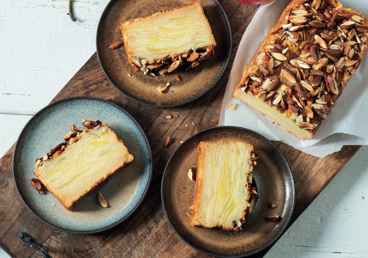 Vymysleli jej Francouzi a nazvali jej ‚gâteau invisible‘, tedy neviditelný koláč, protože plátky ovoce se objeví až jako mozaika na řezu. Těsto připomíná směs na palačinky a koláč potřebuje odpočinek, aby se dobře krájel. Pokud chcete, připravte navíc i karamelovou omáčku.