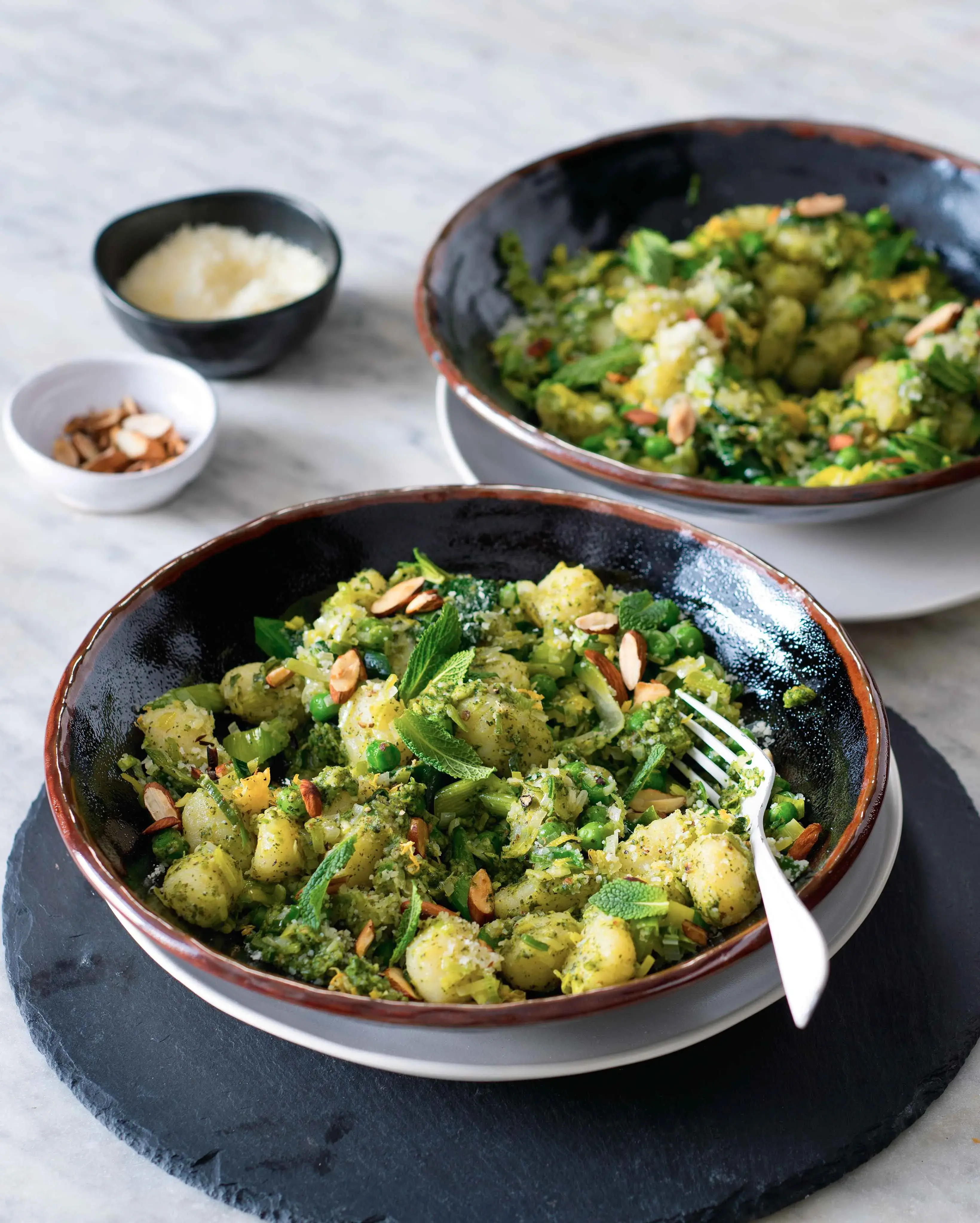 Stejně skvělá jako k bramborovým nokům bude mátovo-hrášková omáčka i k nokům z ricotty nebo k novým bramborám.