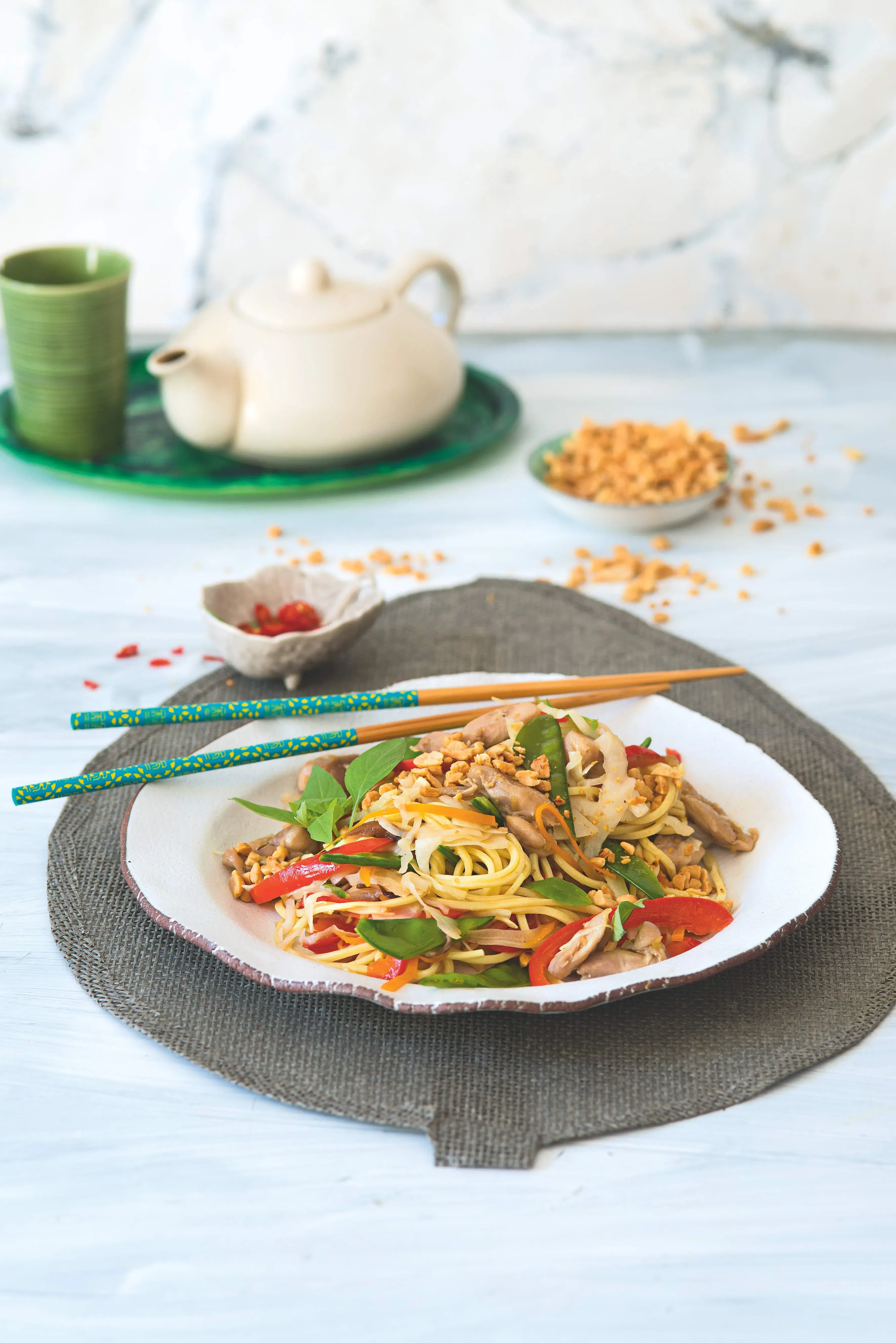 Tahle skvělá bleskovka z woku vám vytrhne trn z paty i během hektických pracovních dnů! Nudle se zeleninou a kuřetem jsou pikantní a neskutečně dobré. Pochutnáte si jako v asijském bistru a přitom nemusíte vystrčit paty z domu.