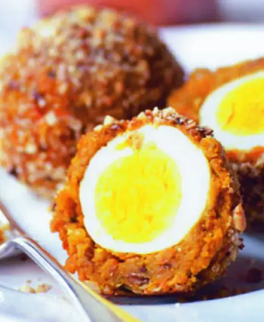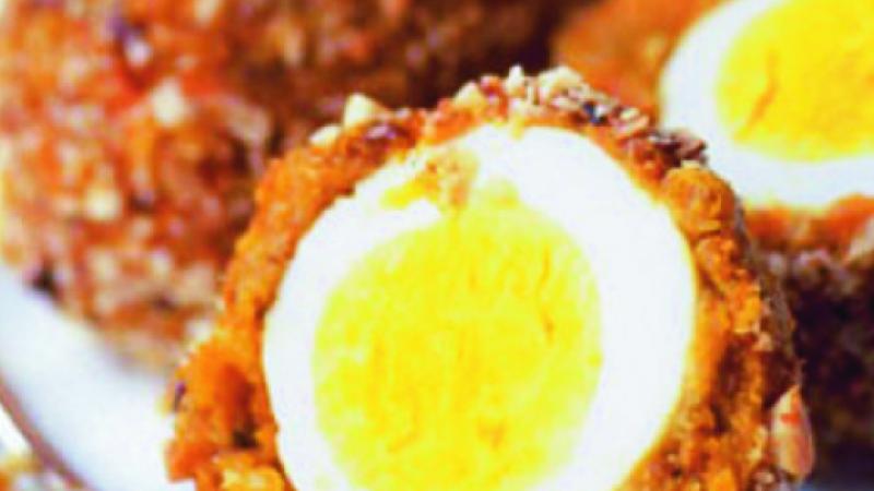 Vtipná vegetariánská varianta speciality britské kuchyně – skotských vajec