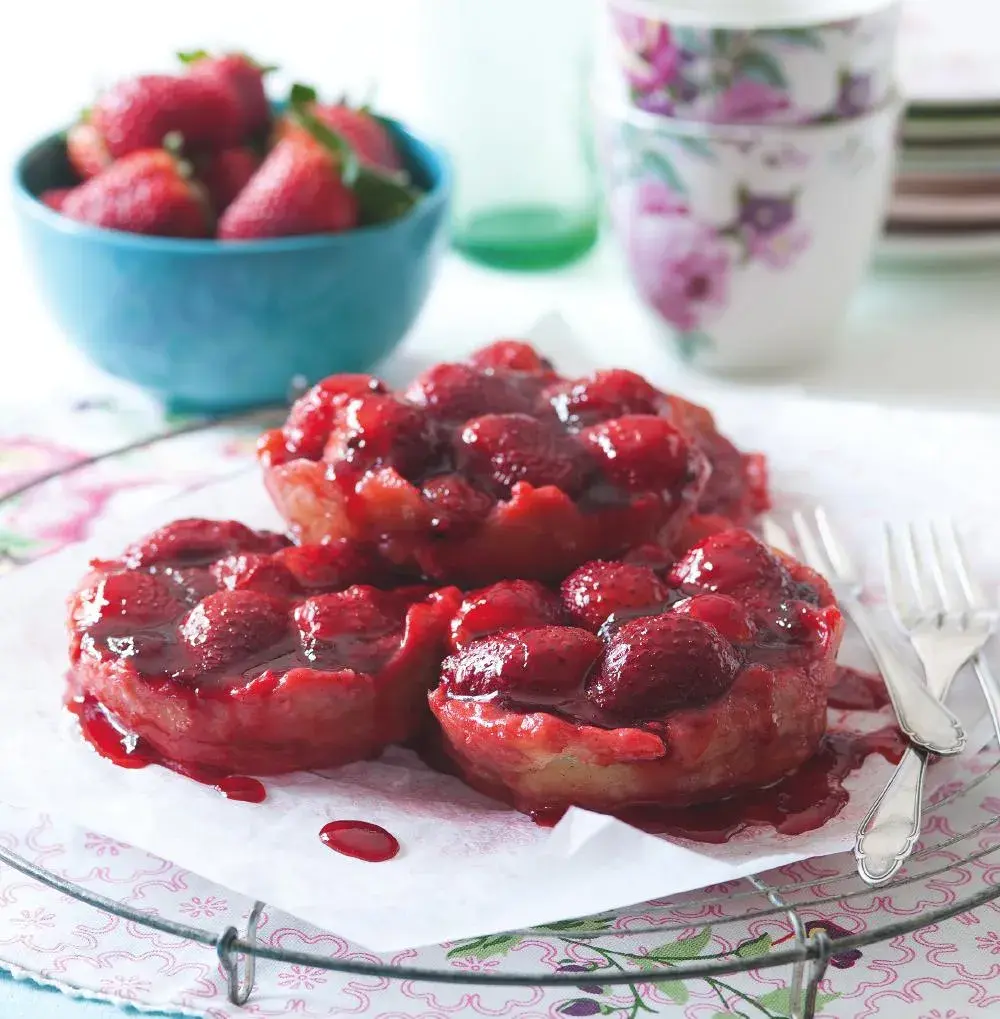 Tímto dezertem ohromíte každou společnost. Obrácené jahodové koláčky chutnají nejlíp ihned po upečení.