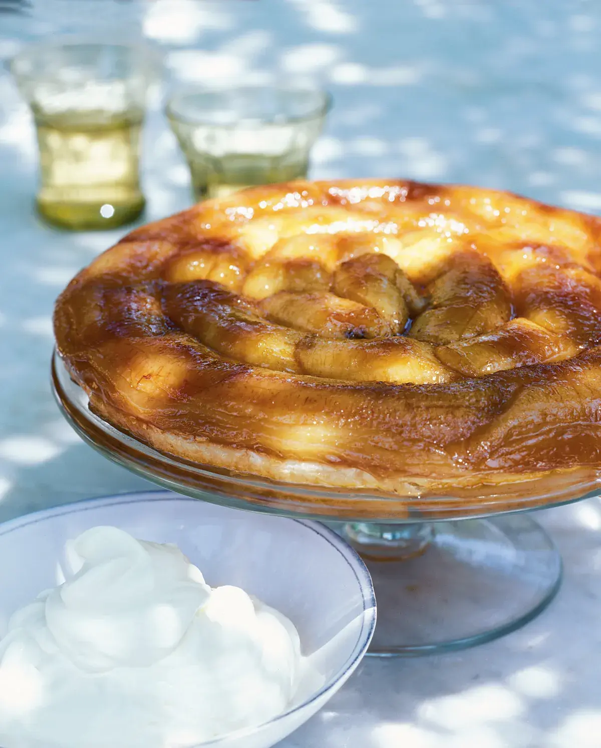 Mezi klasickými francouzskými sladkostmi má čestné místo obrácený koláč tarte Tatin. Zkuste stejně jako my nahradit původní jablka banány – je to vynikající!