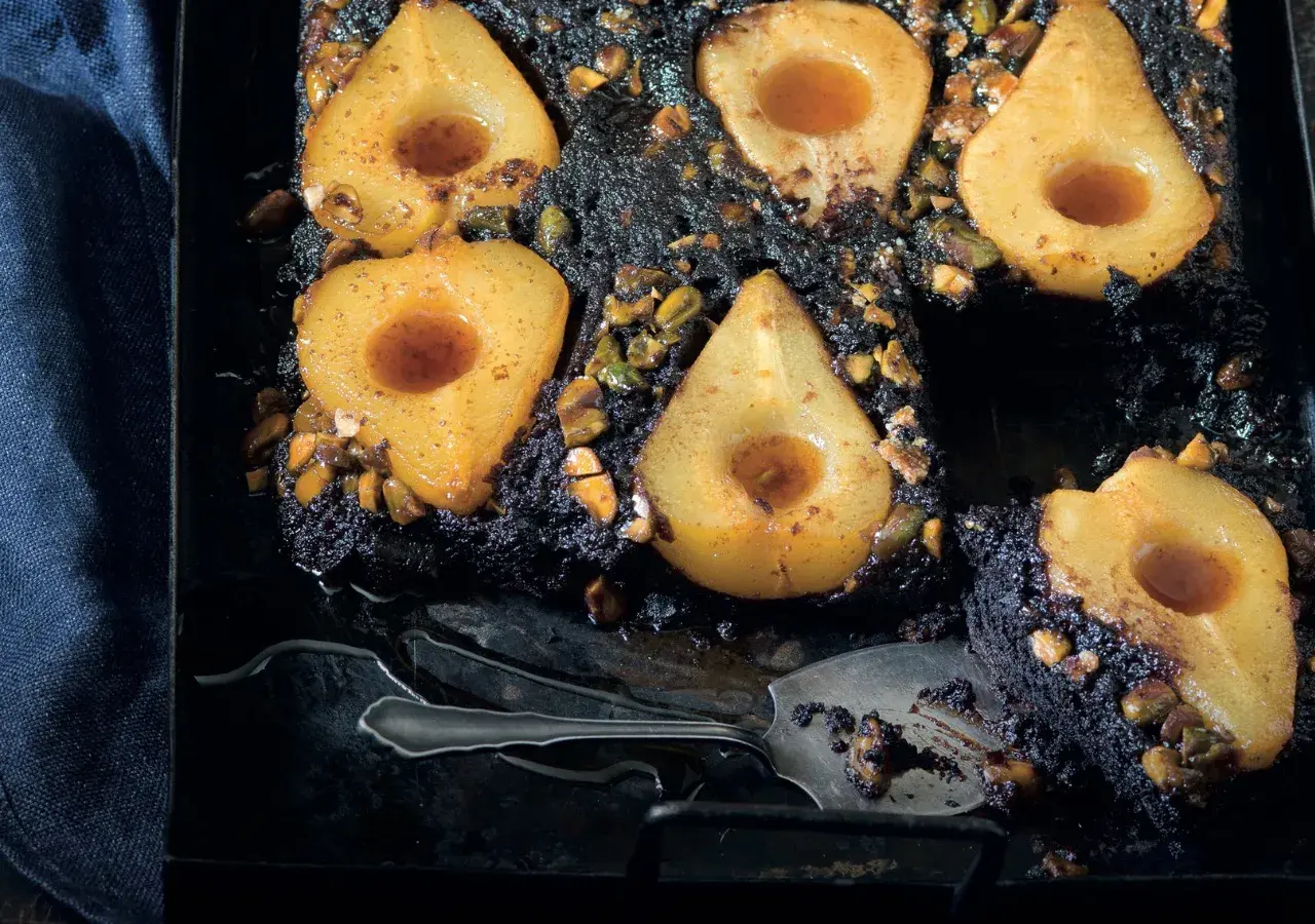 Každý zná slavný jablečný koláč tarte tatin, položit ovoce do karamelu je totiž vždycky dobrý nápad. Tenhle recept vás přesvědčí, že obrácenému koláči svědčí nejen listové, ale i třené těsto. Kombinace karamelových hrušek a kakaa je méně obvyklá, ale o to svůdnější.
