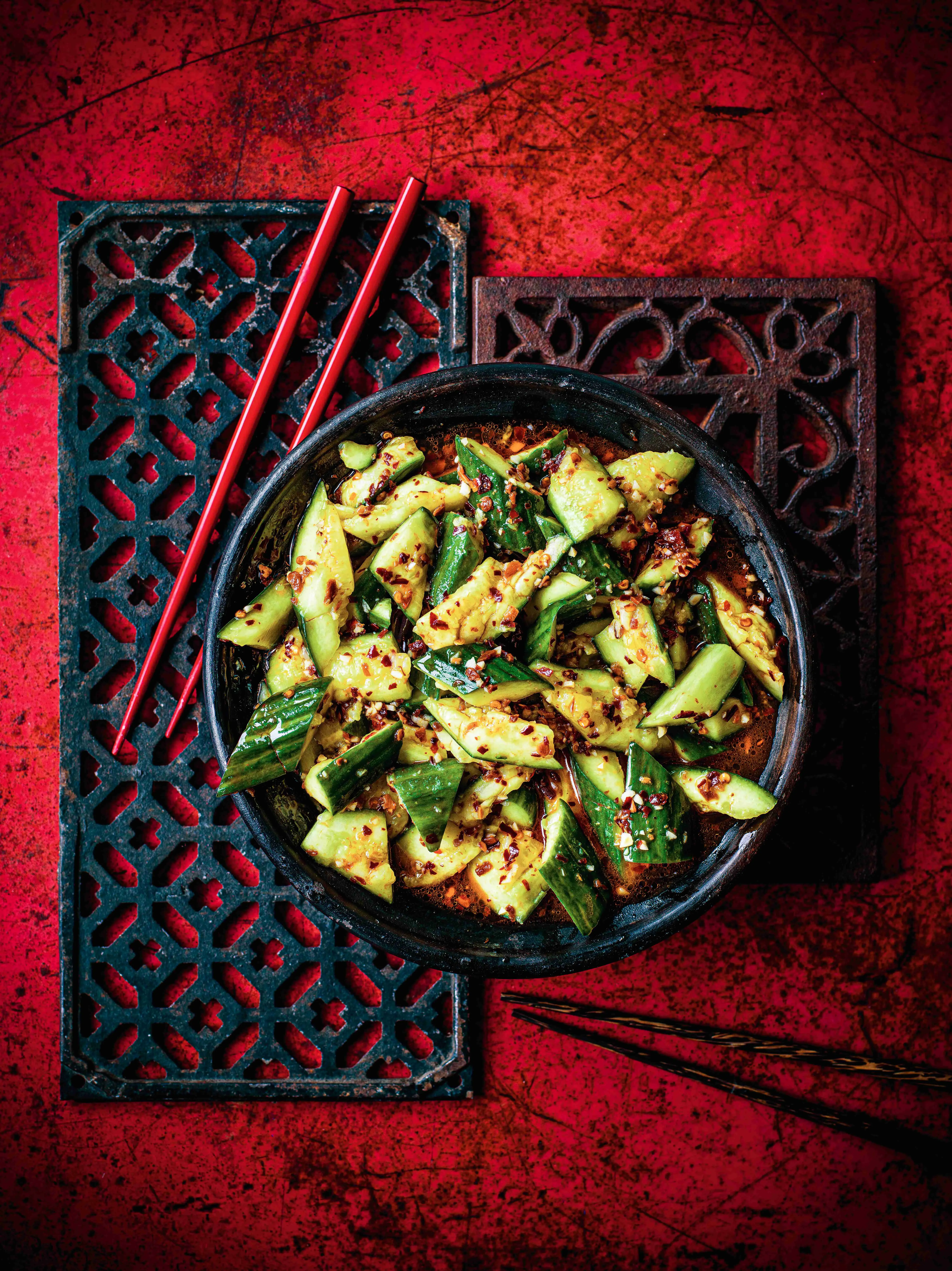 Jejich čínský název ,pai huang gua’, znamená zhruba ,rozplácnuté okurky‘, což plně vystihuje, jak se s nimi nakládá při přípravě. Díky této zdánlivé podivnosti se na nich vytvoří mnoho drobných plošek a lépe pak vstřebají výraznou marinádu.