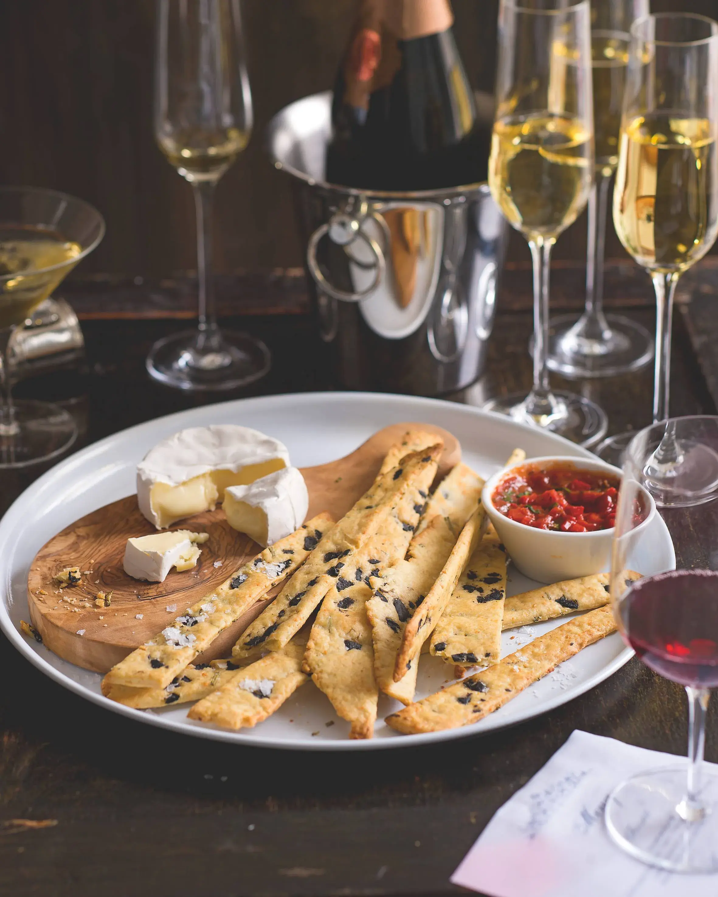 Křupavé krekry podávejte se sýrem, sušenými rajčaty, pečenými paprikami apod.