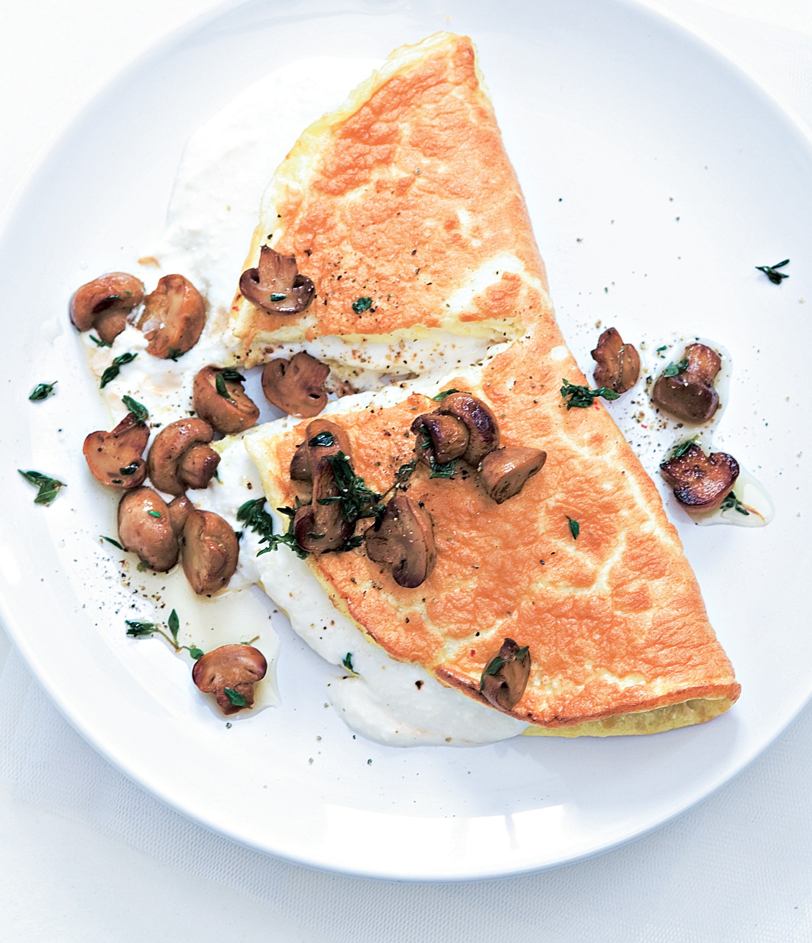 Omeleta se žampiony, kozím sýrem a bylinkami je ideální snídaně pro nedělní ráno. Anebo rychlá večeře ve všední den.