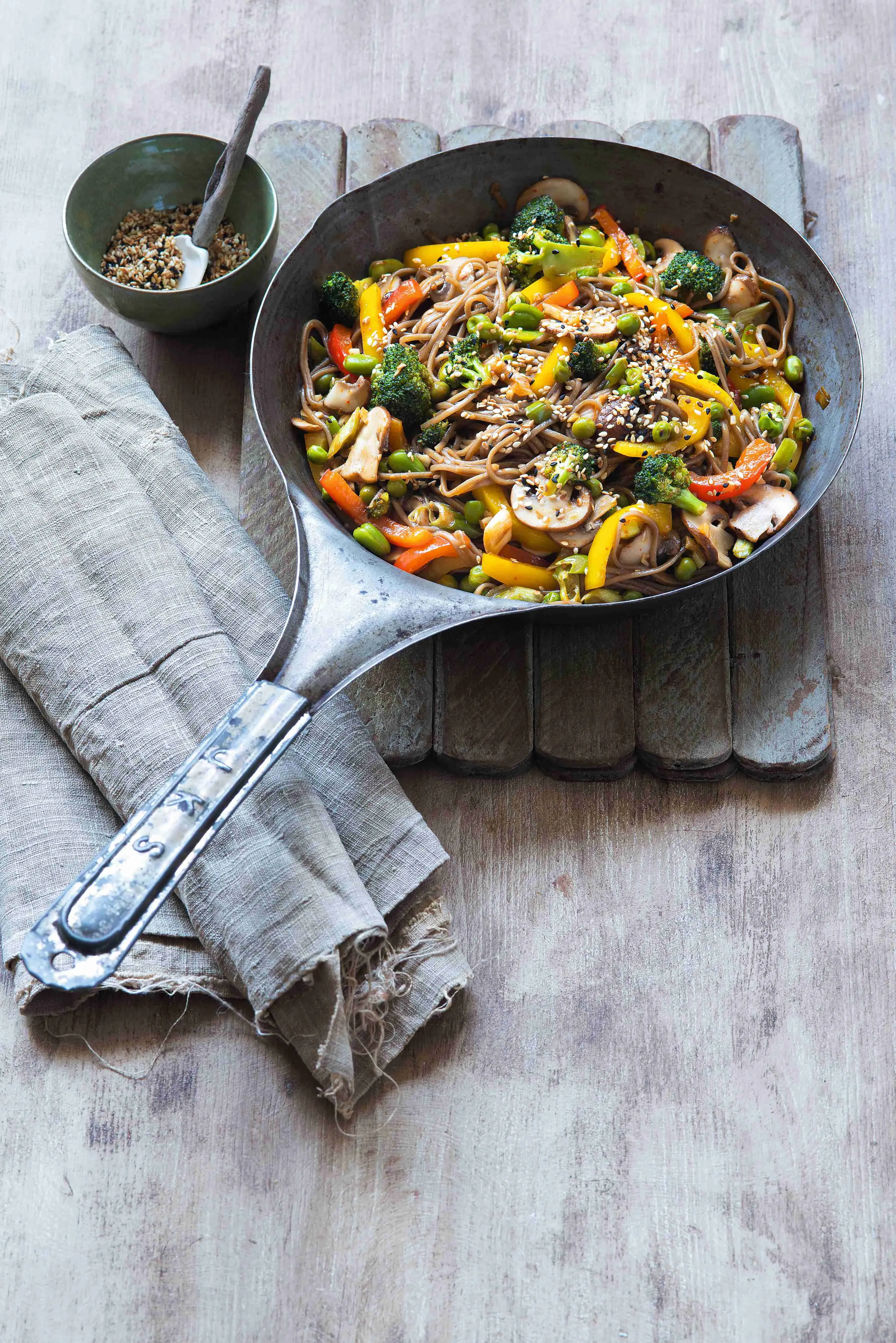 Pestrobarevná večeře plná zeleniny nadchne nejen vegany. Díky bleskové a snadné přípravě si ho jistě zamilujete také.