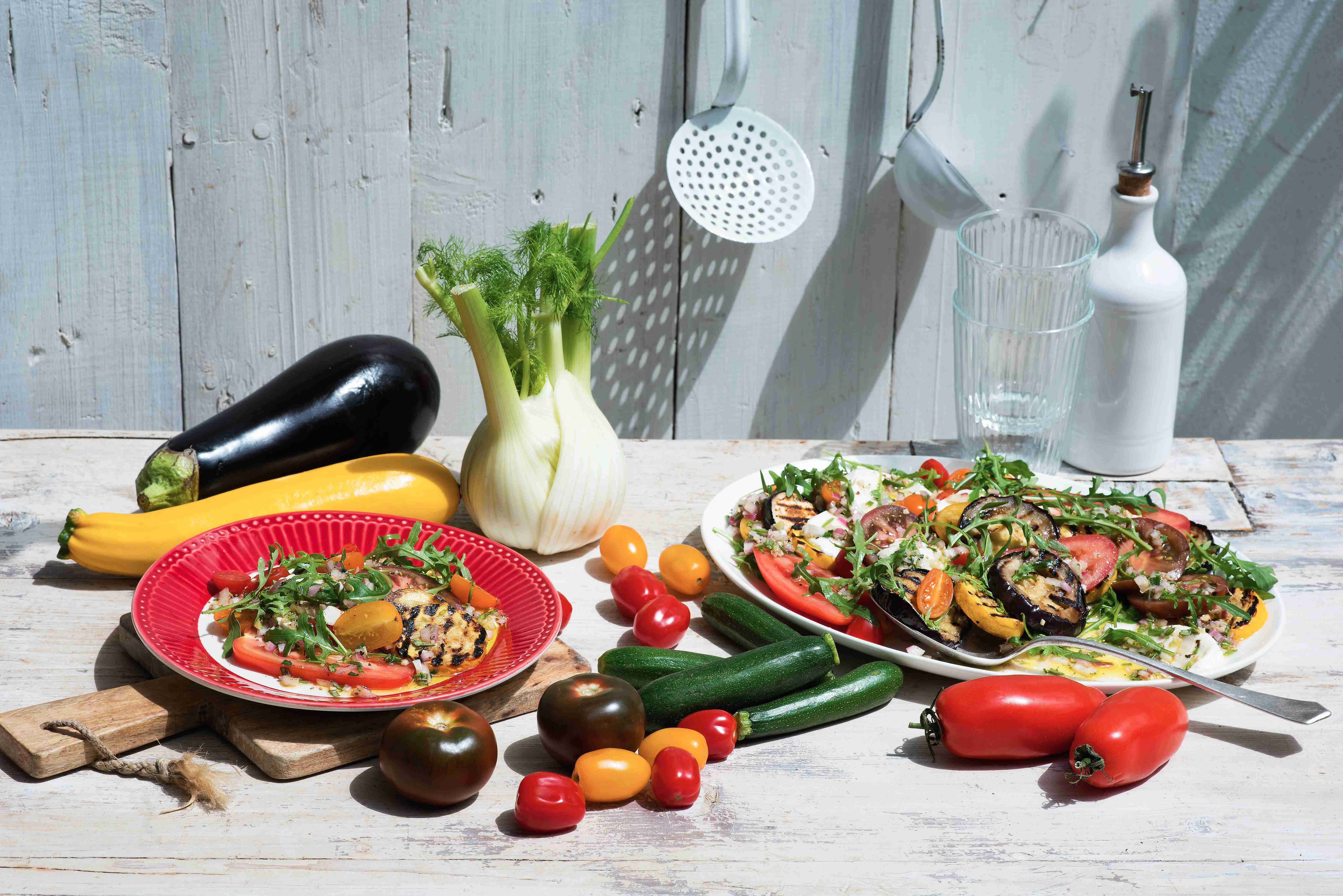 Srpnová úroda zeleniny je bohatá, políbená sluncem a taky prázdninami! Konečně jsou tady domácí lilky a luxusně zralá rajčata. Přidejte cuketu, všechnu zeleninu opečte a luxusní letní večeře je na světě.