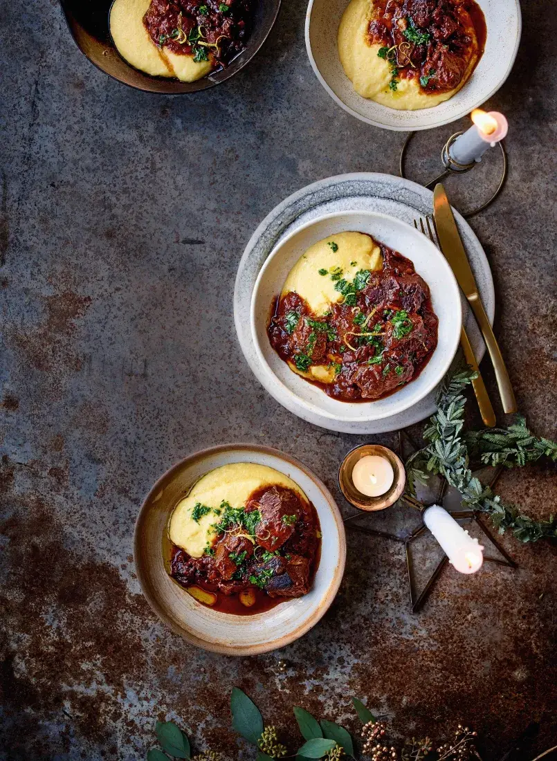 Zvěřina na povidlech a jalovci je ideální volbou pro sváteční chvíle. Sýrová polenta v roli přílohy ještě násobí luxusní dojem. Vaříte-li ovšem i pro děti, vynechte alkohol, přidejte o něco víc povidel a maso podlijte o trochu větším množstvím vody.