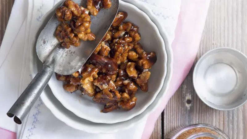 Ořechy v karamelové krustě s pomerančovou příchutí jsou naprosto skvělé například do jogurtu nebo jen tak samostatně na zobání, když přijde návštěva.