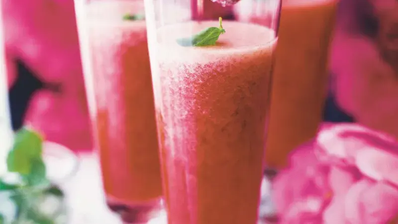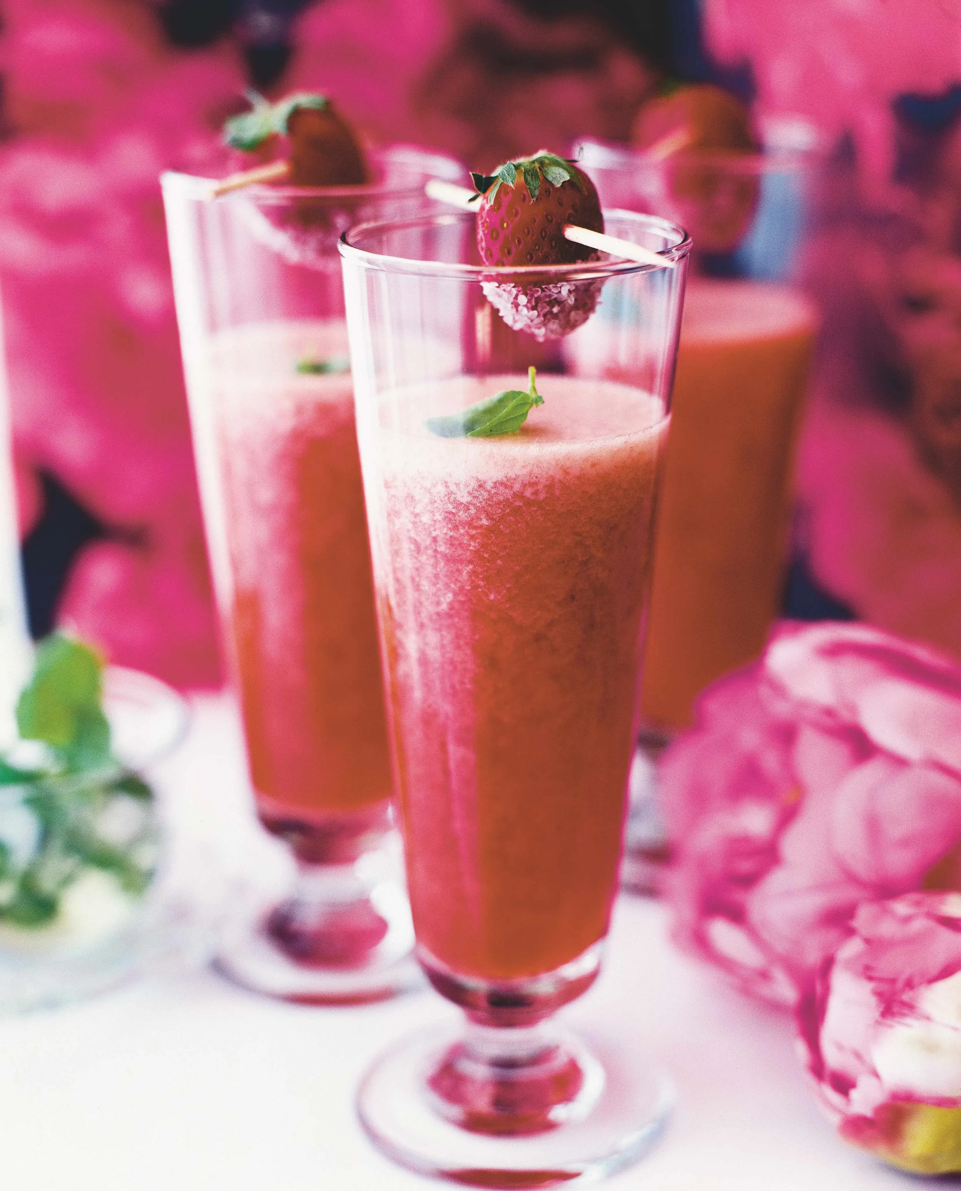 V odlehčeném koktejlu je mléko nahrazeno perlivou minerálkou – a bazalka mu dodává jedinečnou příchuť. Před přípravou všechny přísady kromě cukru vychlaďte, aby byl výsledek co nejvíc osvěžující.