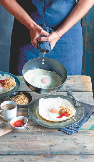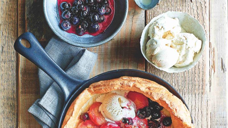 Na tuhle dobrotu potřebujete pánvičku vhodnou do trouby o průměru 20–23 centimetrů. Musí i pěkně vypadat, protože z trouby v ní jde nadýchaná palačinka rovnou na stůl. Padá totiž podobnou rychlostí jako suflé.