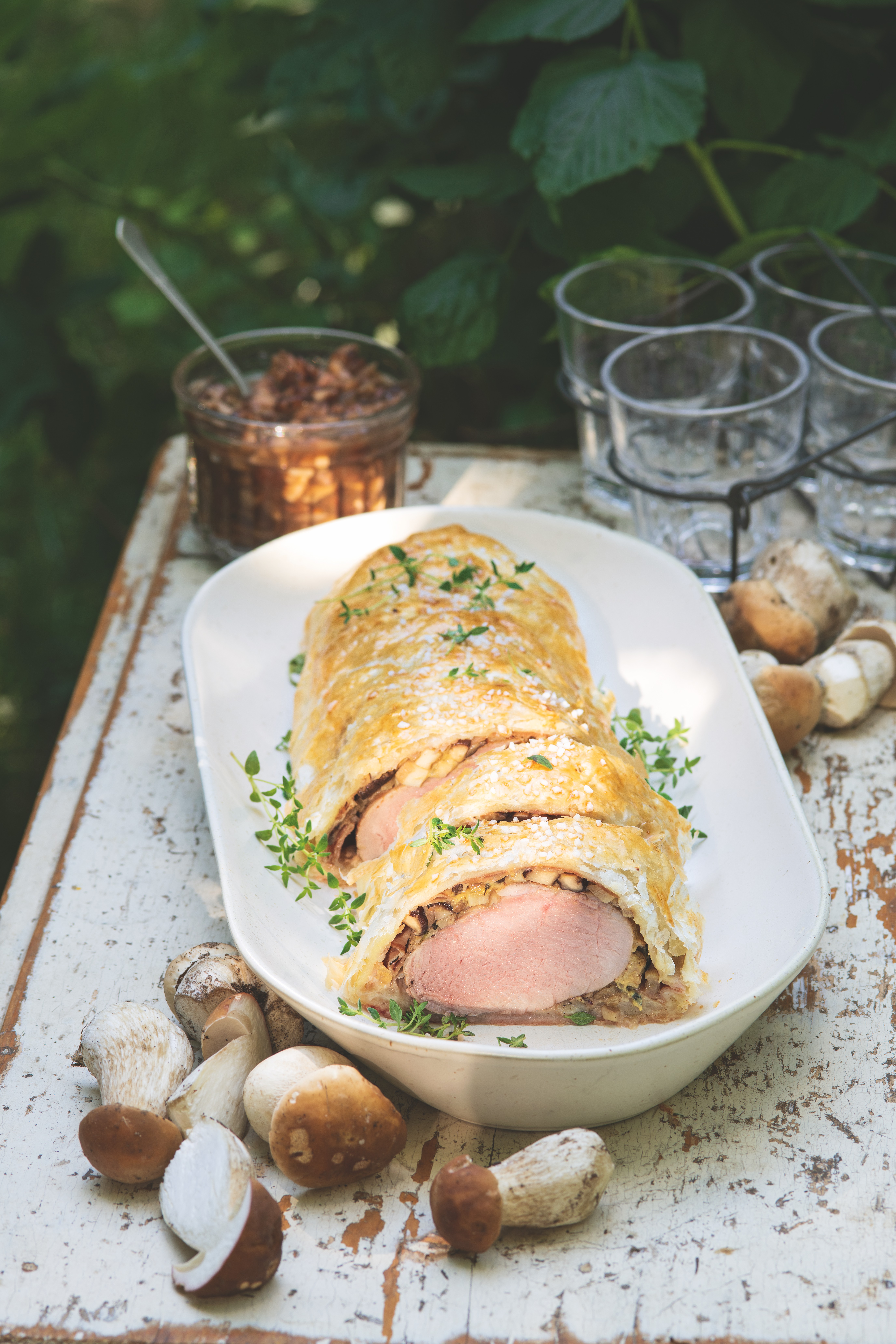 Hřiby právě rostou a tento recept je pro ně jako stvořený! Panenka à la Wellington s houbovým přelivem zabalená v listovém těstě je krásná na pohled a chuťově naprosto fantastická.