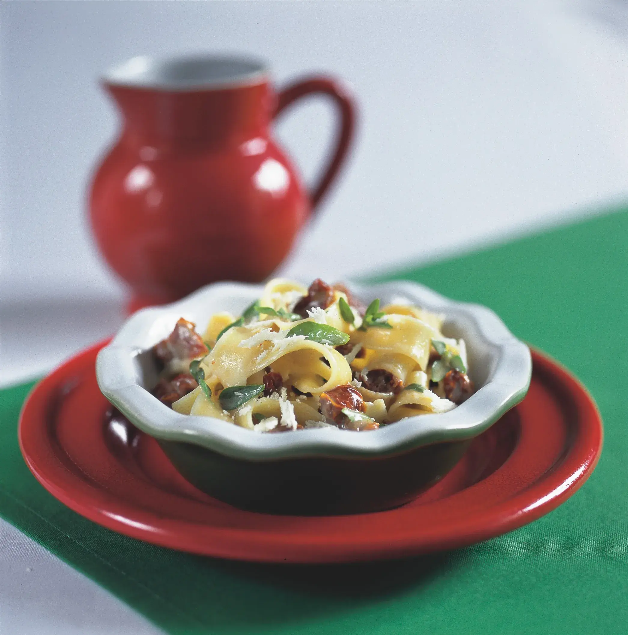 Famózní příloha k italské panence! Samozřejmě můžete hostům naservírovat i neochucené těstoviny – ale takhle zajistíte své party úspěch a sobě nehynoucí slávu.
