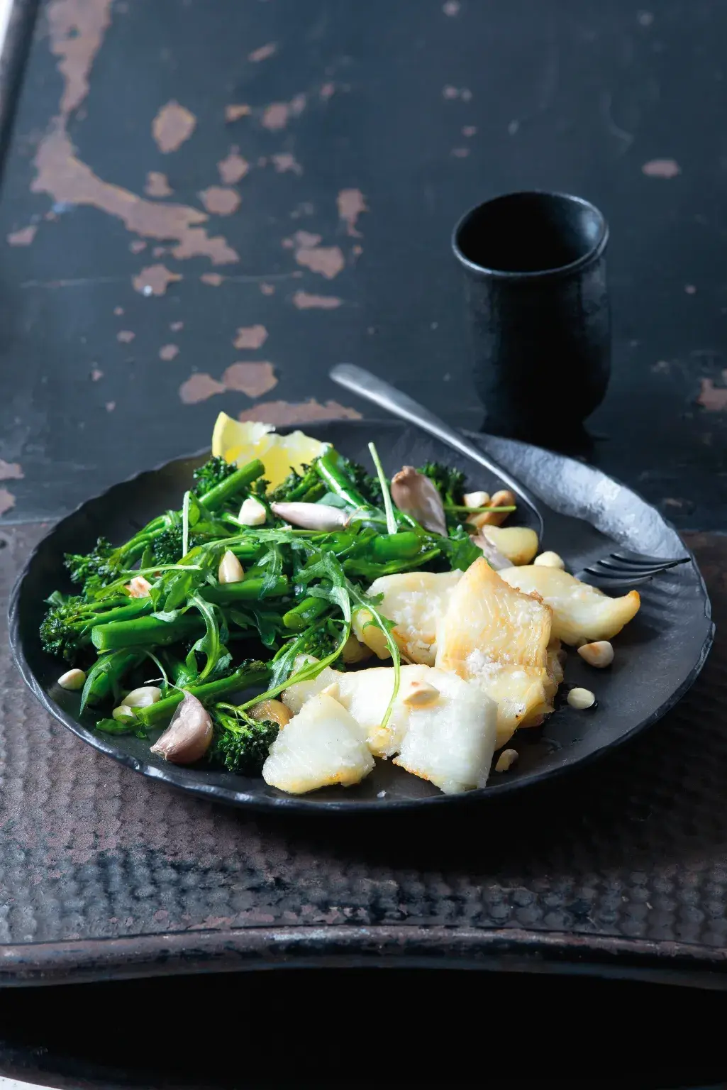 Teplý brokolicový salát je tak dobrý, že ho možná budete připravovat nejen k rybě. Halibut je skvělá volba, ovšem pokud ho neseženete, použijte jakoukoliv jinou chutnou bělomasou rybu.