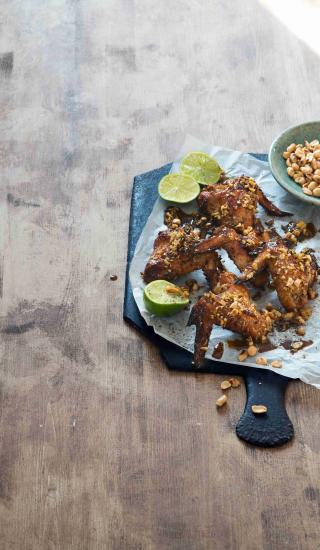 Svěží salátek nabitý vitaminy z podzimní zeleniny a k tomu křupavá, lehce pikantní kuřecí křidýlka a paličky. Tohle je ideální podzimní večeře.
