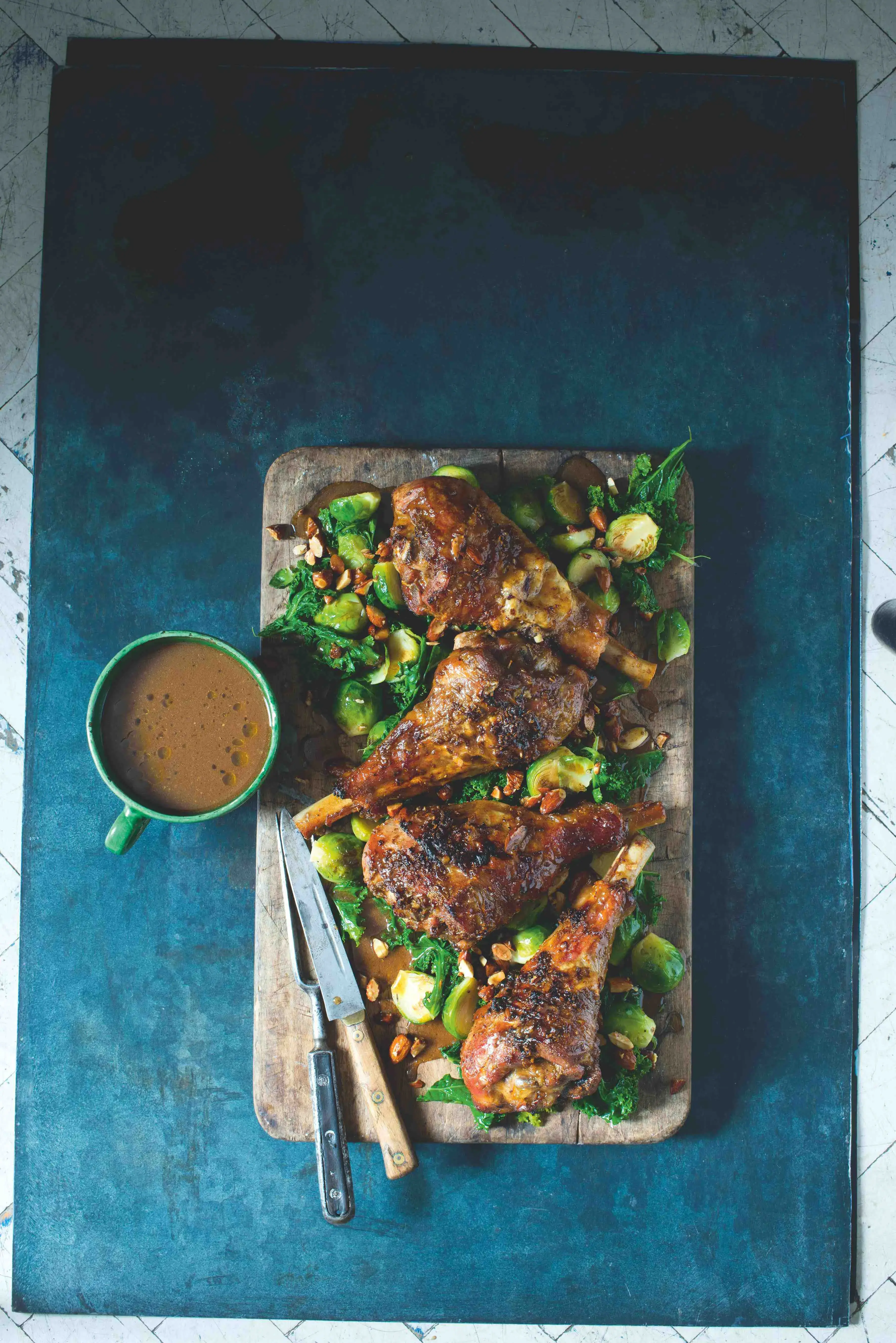 Vypečená krůtí stehna se zlatavou kůrčičkou, krásně zelené kapustičky, křupavé mandle... Nezní to jako hostina hodná královské návštěvy?