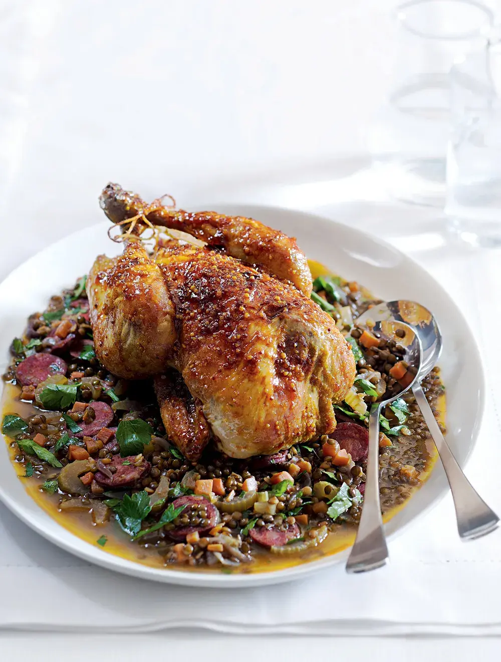 Pečená perlička je naprostá delikatesa a nápad nasypat čočku bez předváření do základu pod perličku a celý pekáč strčit do trouby nás dostal!
