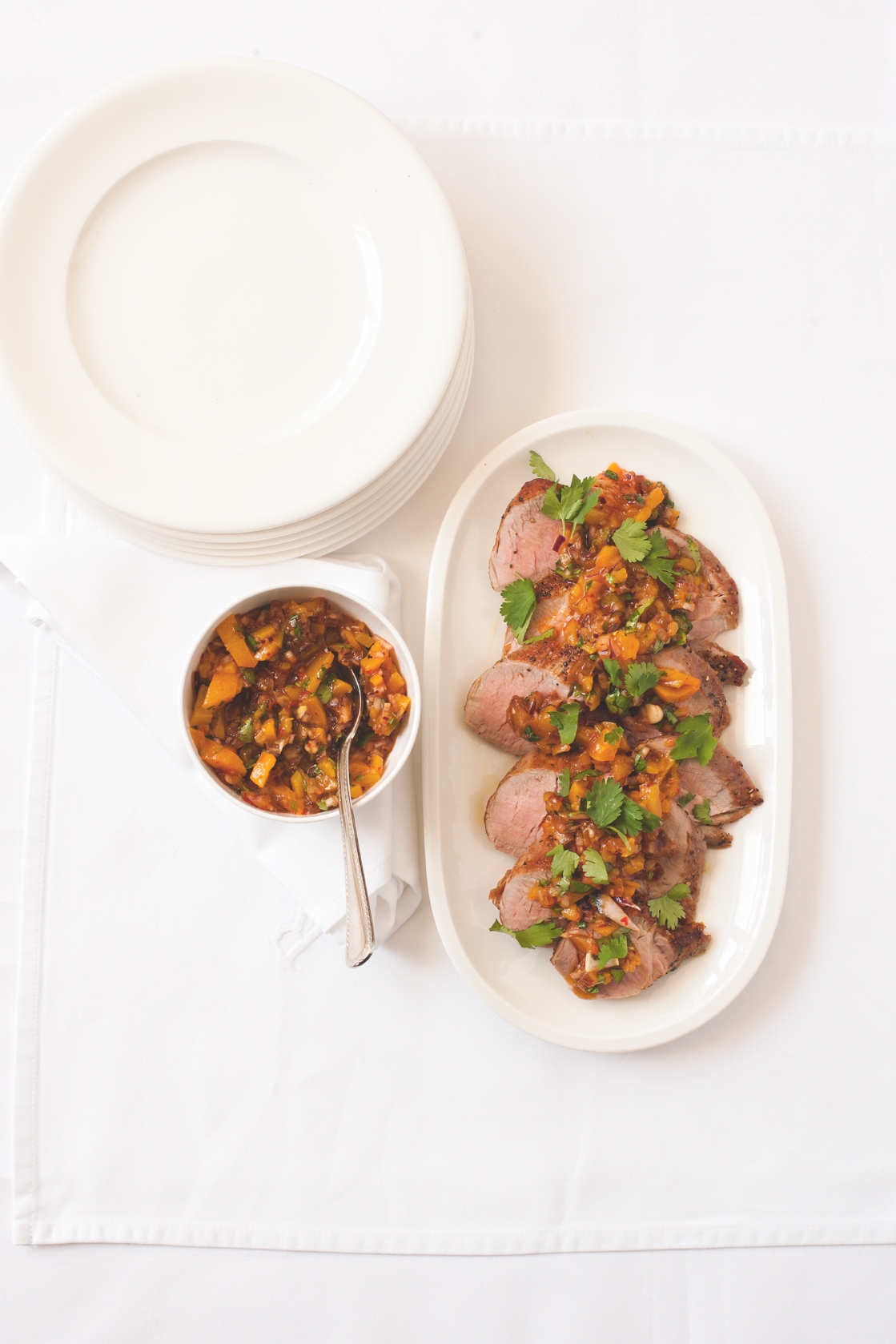 Pikantní broskvová salsa dodá jinak chuťově neutrální panence ten pravý šmrnc.