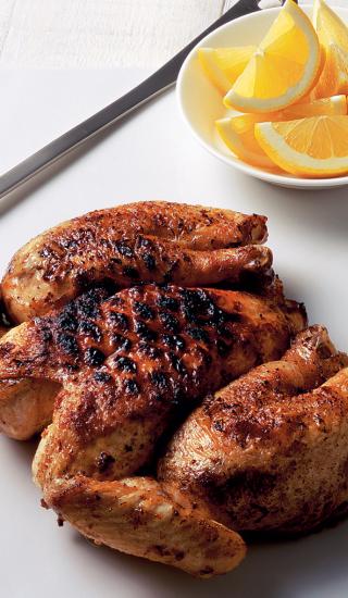 „Budete-li mít teploměr, už nikdy o kuřeti neřeknete, že je to suché maso,“ říká Jirka Hilgart. A vyzkoušet to můžete hned na tomto receptu. Pečené baby kuře s brambůrkami je báječný oběd nebo večeře z grilu.