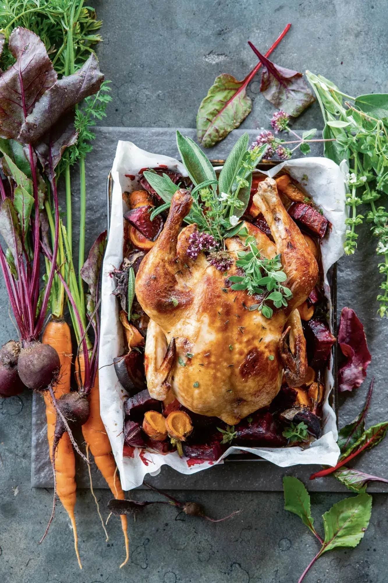 Pečené kuře s podzimní zeleninou a bylinkami je trefa do černého! Žádné složité přípravy, ani neznámé ingredience. Výsledkem je parádní rodinný oběd z jednoho pekáče, po kterém se jen zapráší...