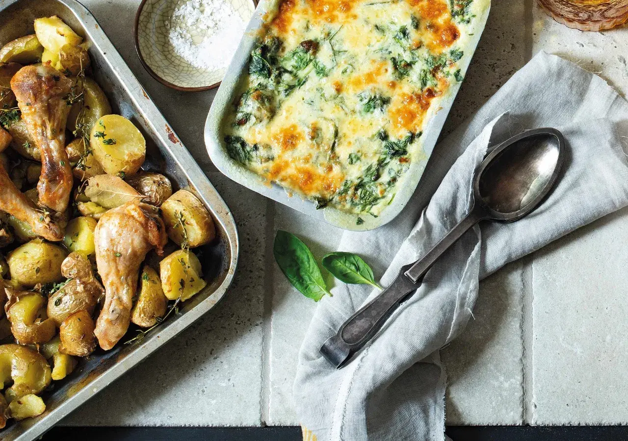 Pečené kuře s krémovým špenátem – jídlo, ve kterém ukryjete spoustu listového špenátu, aniž by nepřátelé zelených listů protestovali. Může za to lahodná krémová omáčka a roztavený čedar navrch. Perfektní nedělní oběd z jednoho pekáče.