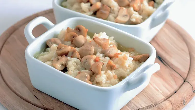 Máte-li čerstvé nebo mražené hříbky z lesa, určitě jim dejte přednost před žampiony. Chuť rizota bude bohatší.