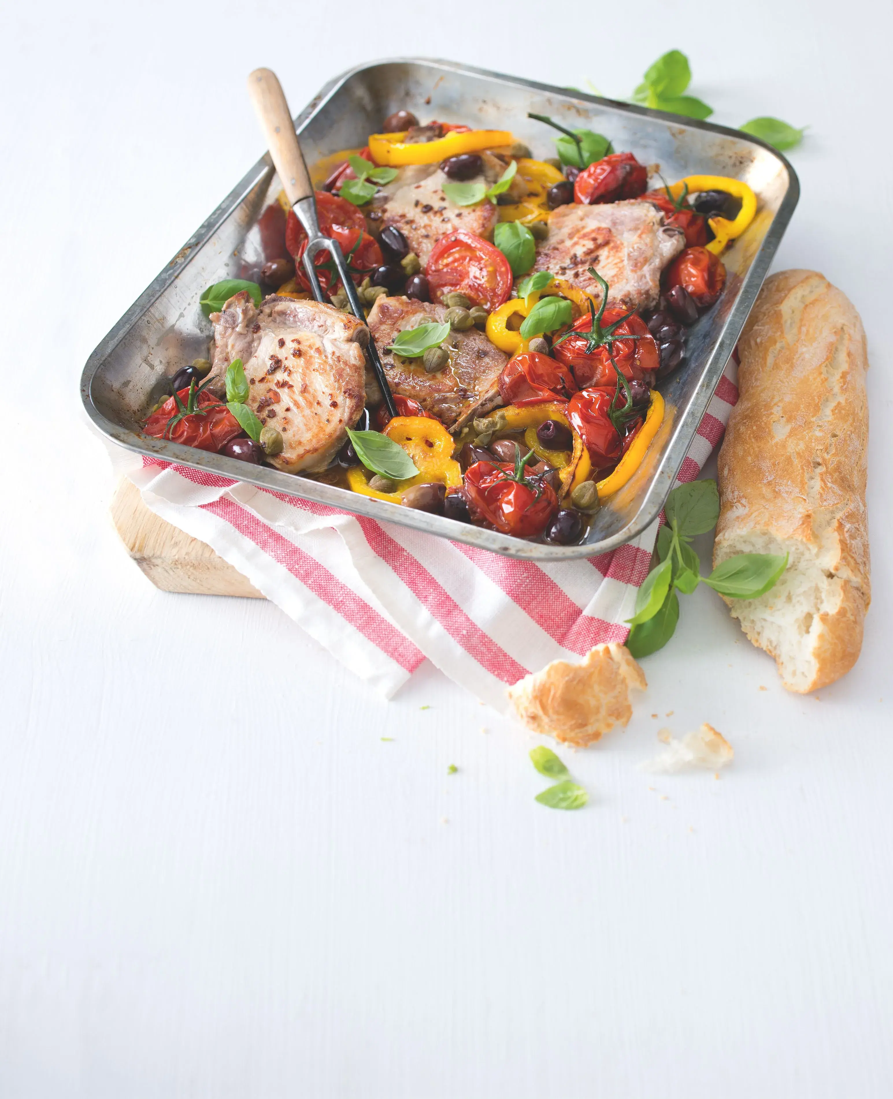 Omáčka puttanesca se tradičně dává na těstoviny. Vypůjčili jsme si její přísady (vynechali jsme však sardelky a naopak přidali papriku) a musíme říct, že i s kotletami jí to moc sluší.