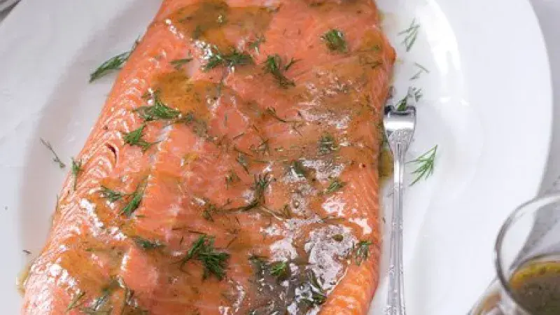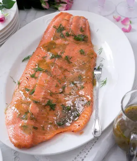 Při přípravě tohoto pokrmu jsme se inspirovali receptem na marinovaného lososa gravlax. Naloženého lososa pak ještě krátce opečte a podávejte s tradiční severskou koprovohořčičnou omáčkou.