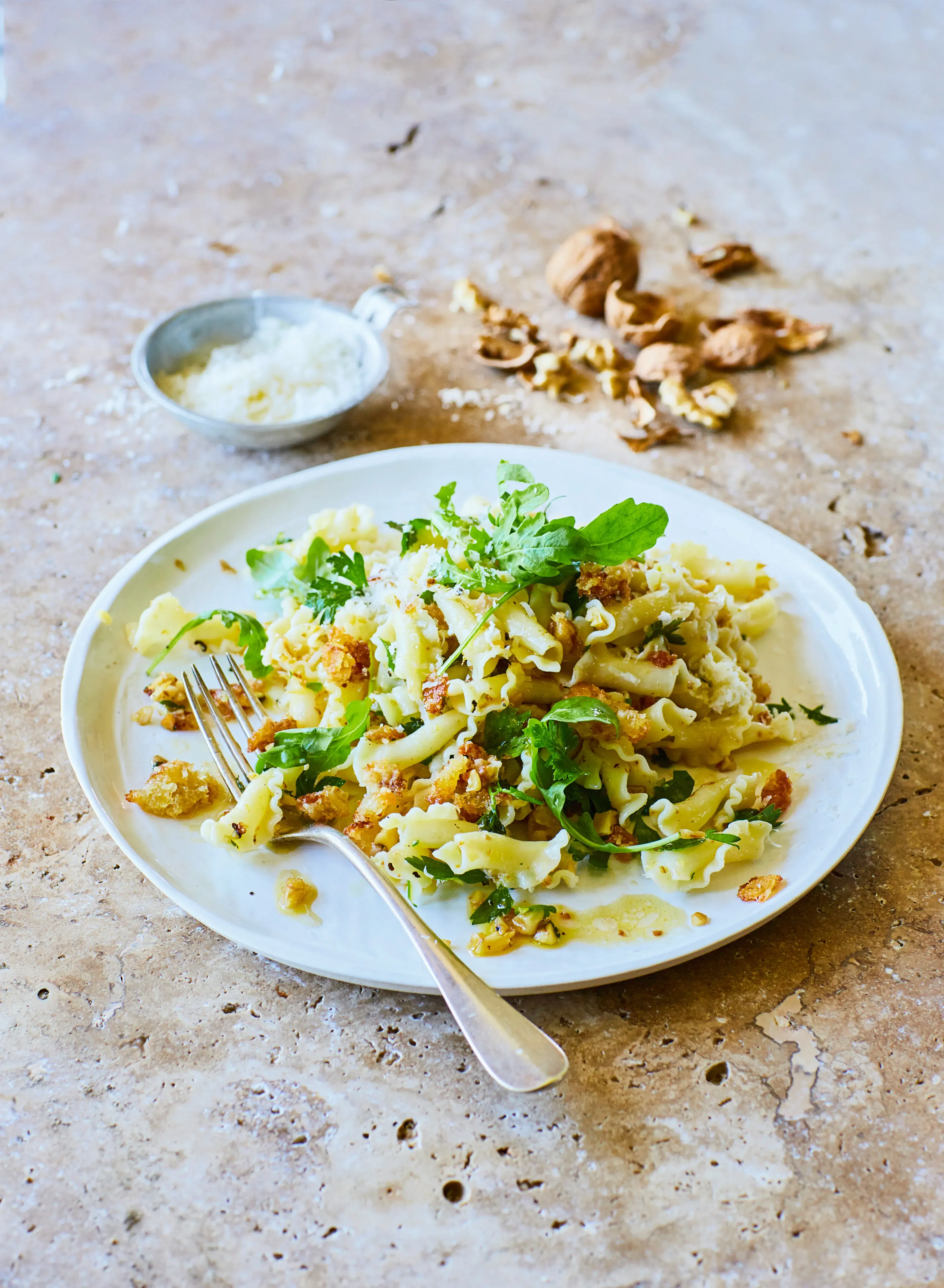 Penne s vlašskými ořechy a křupavými parmazánovými krutony zvládnete raz dva. Je to jednoduché, vegetariánské jídlo, které si připravíte i po opravdu náročném dni. Stačí pár surovin, minimum času a úspěch máte zaručený!