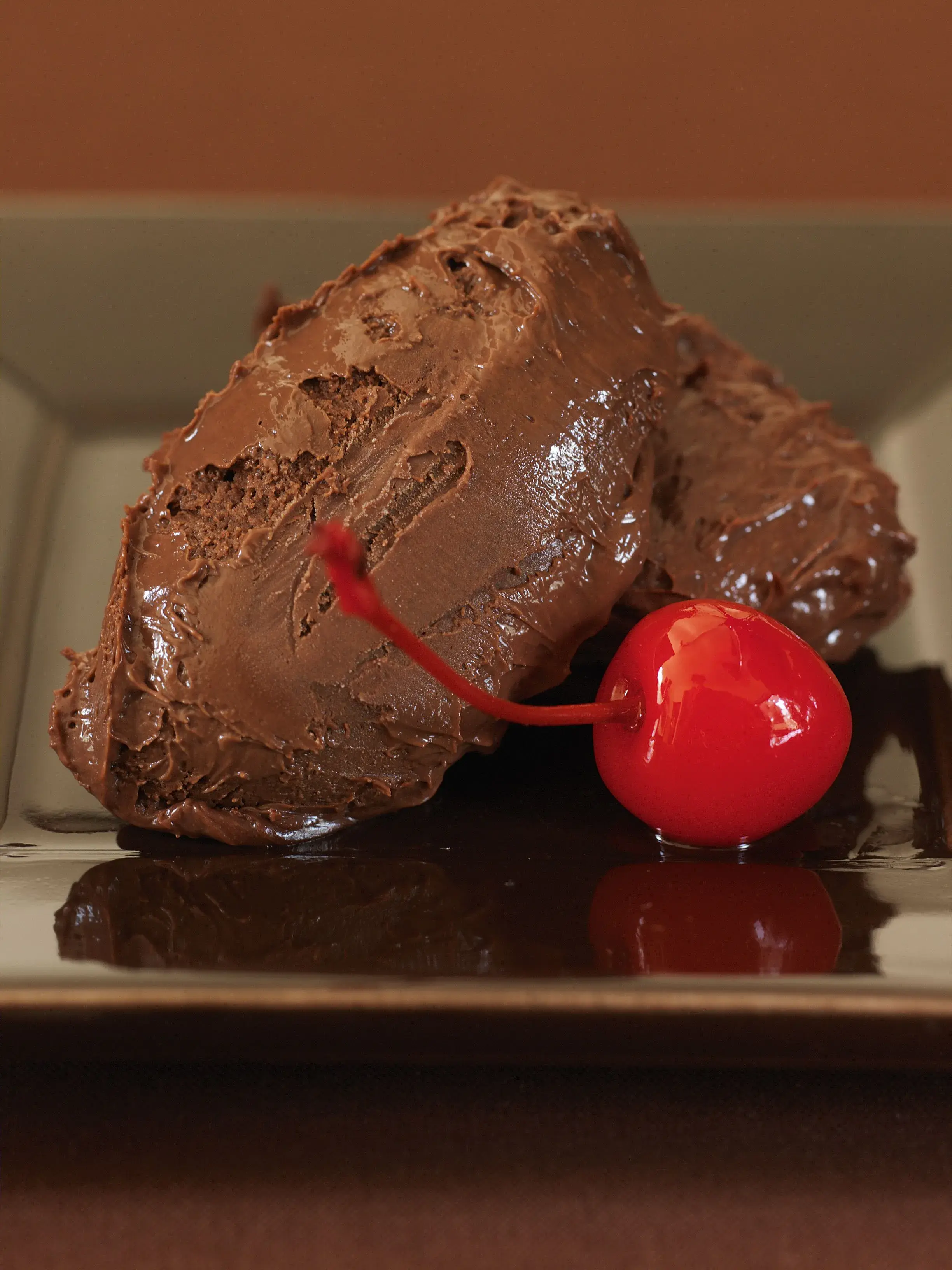 Vedle nadýchané čokoládové pěny (mousse) umějí Francouzi i hutnější směs, z níž vykrajují nočky. Doplňují je zavařeným ovocem.