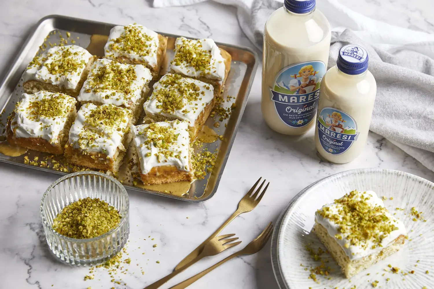 Dost bylo suchých buchet! Upečte si perfektní pistáciový koláč. Stačí těsto prolít mlékem, a dostanete neuvěřitelně šťavnatý koláč. Trik spočívá v tom, že použijete zahuštěné, tedy vody zbavené mléko, které moučník nerozmočí, jen tak akorát navlhčí.