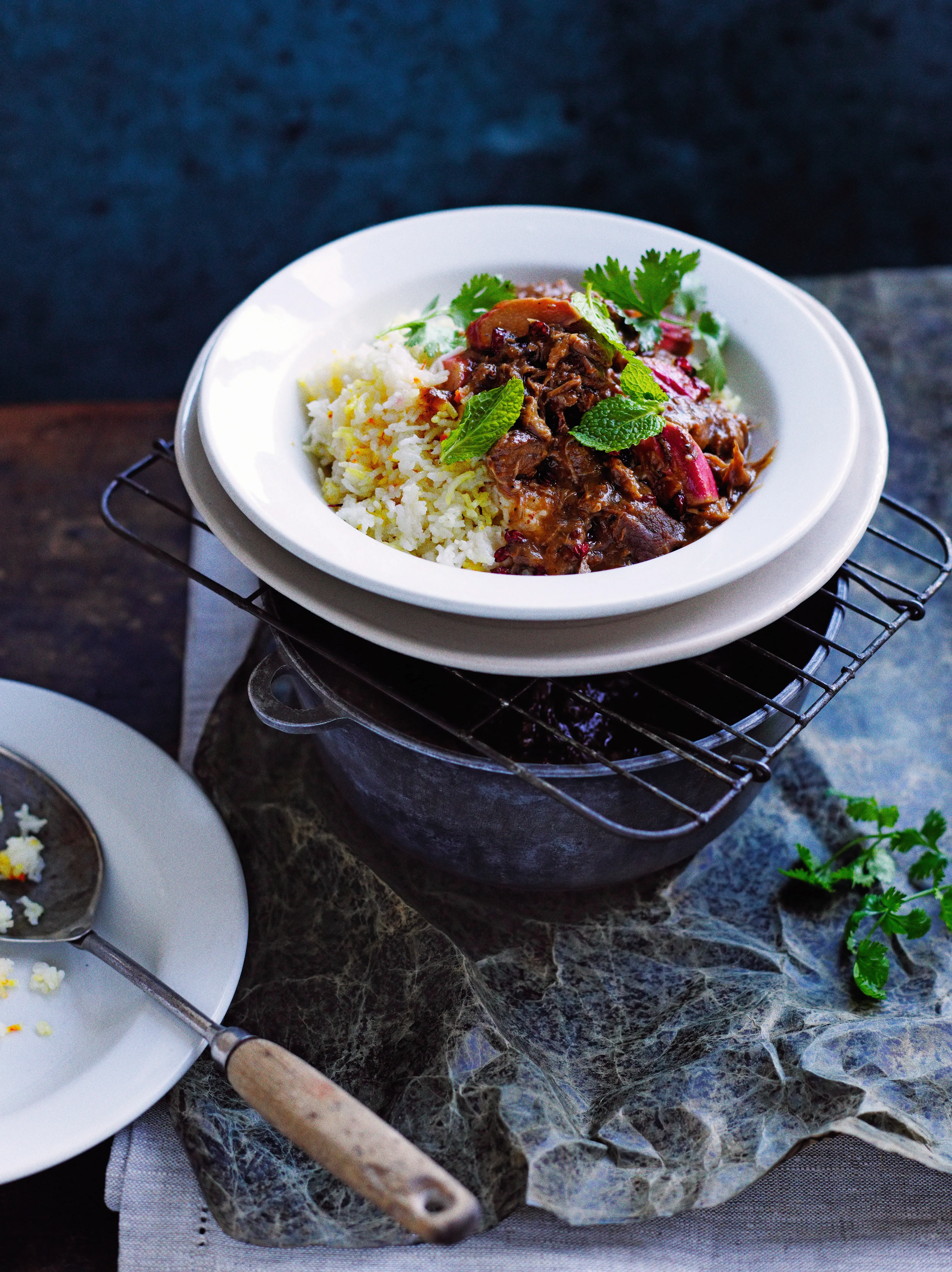 Perské jehněčí s rebarborou a rýží na způsob čelow je jídlo, které vás vezme na výlet do vonného světa orientální kuchyně. Kombinace jemného masa, nakyslé rebarbory a nadýchané rýže se šafránem je pro nás nezvyklá, zato velmi chutná. Tradiční recept s moderním nádechem, ideální pro chvíle, kdy chcete vařit srdcem – a trochu jinak než obvykle.