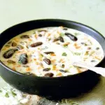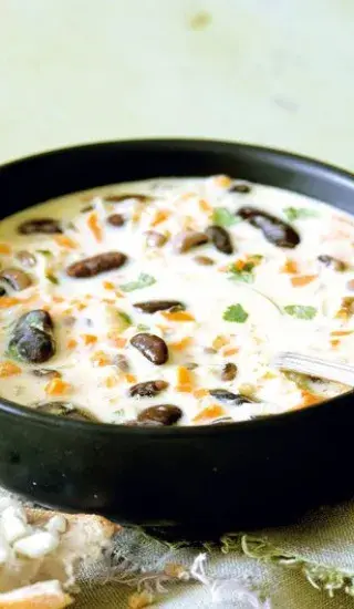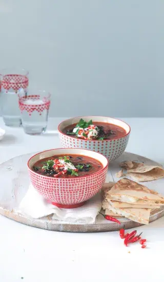 Zářivá fazolová polévka nejdřív potěší oko a pak si lžící naberete od okraje a v ústech se vám rozlije lahodně ostrá chuť. Fazolačka s klobásou získá mnohem jemnější konzistenci, když ji naservírujete stejně jako my s kopečkem zakysané smetany. A je jedno, jestli v době oběda, nebo jako sytou a hřejivou večeři.