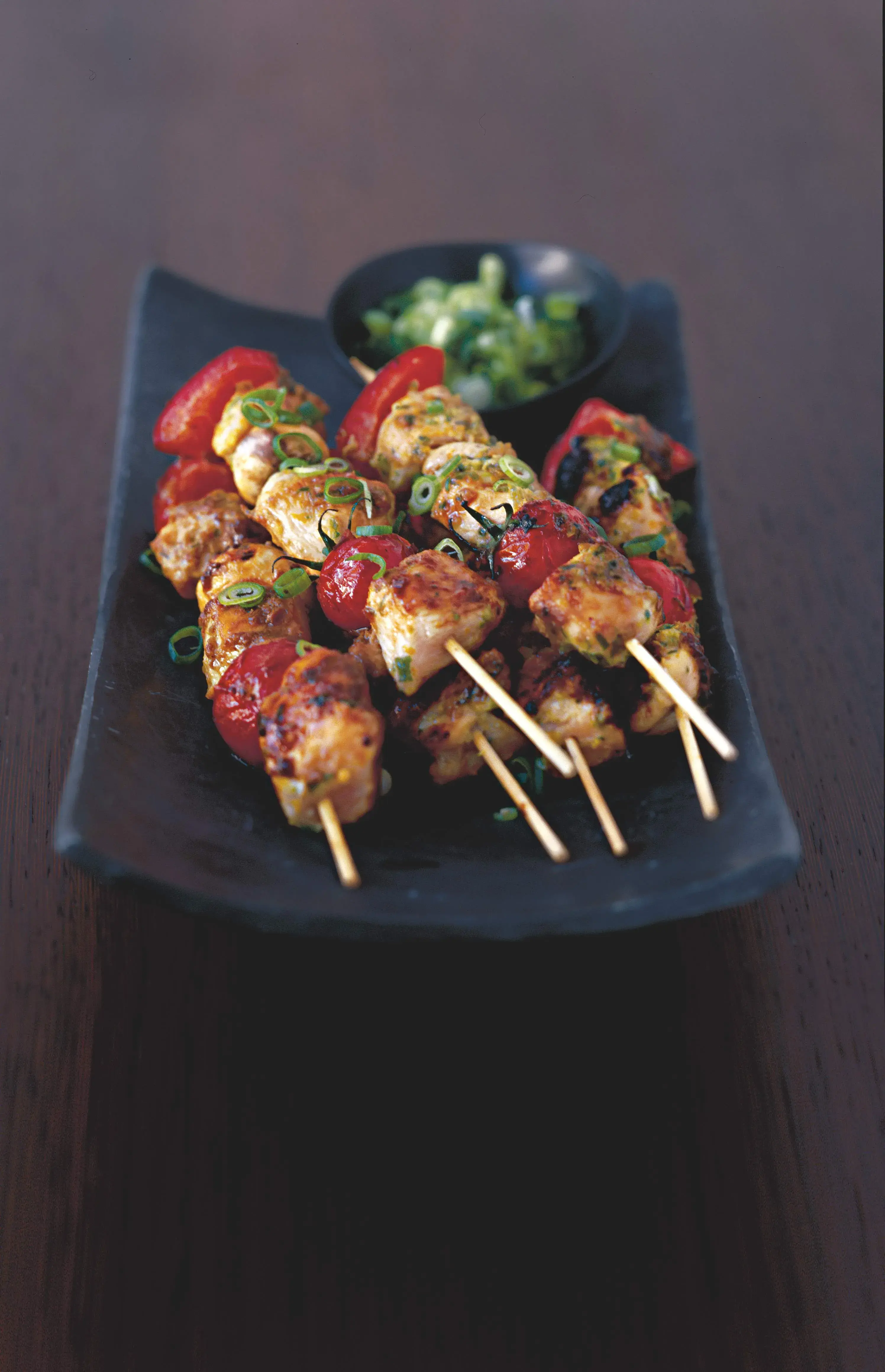 Slovník říká, že kebab jsou malé hranolky masa, nejprve marinované, pak napíchnuté na jehlu a grilované nad dřevěným uhlím. Naše báječná verze má ovšem – jako vždycky – něco navíc: žampiony, papriky a třešňová rajčátka.
