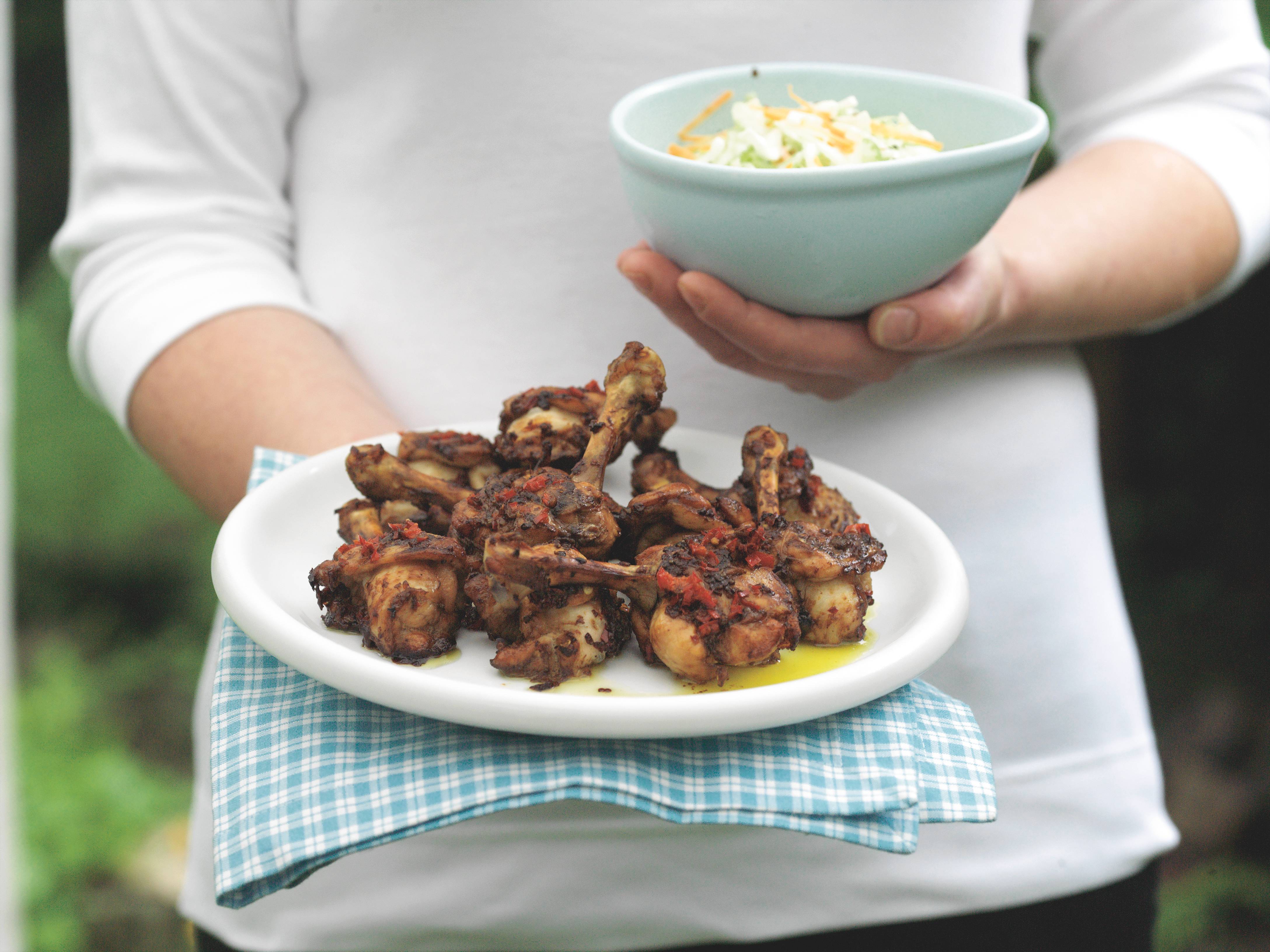 Stačí tři řezy nožem, a máte po starostech, jak kuřecí křidýlka co nejdůkladněji okousat. Z křidýlek se stanou paličky! Dobře se drží – a ještě lépe konzumují! Maso naložím do marinády už doma; pokud jsou křidýlka opravdu čerstvá, v chladu vydrží až dva dny.