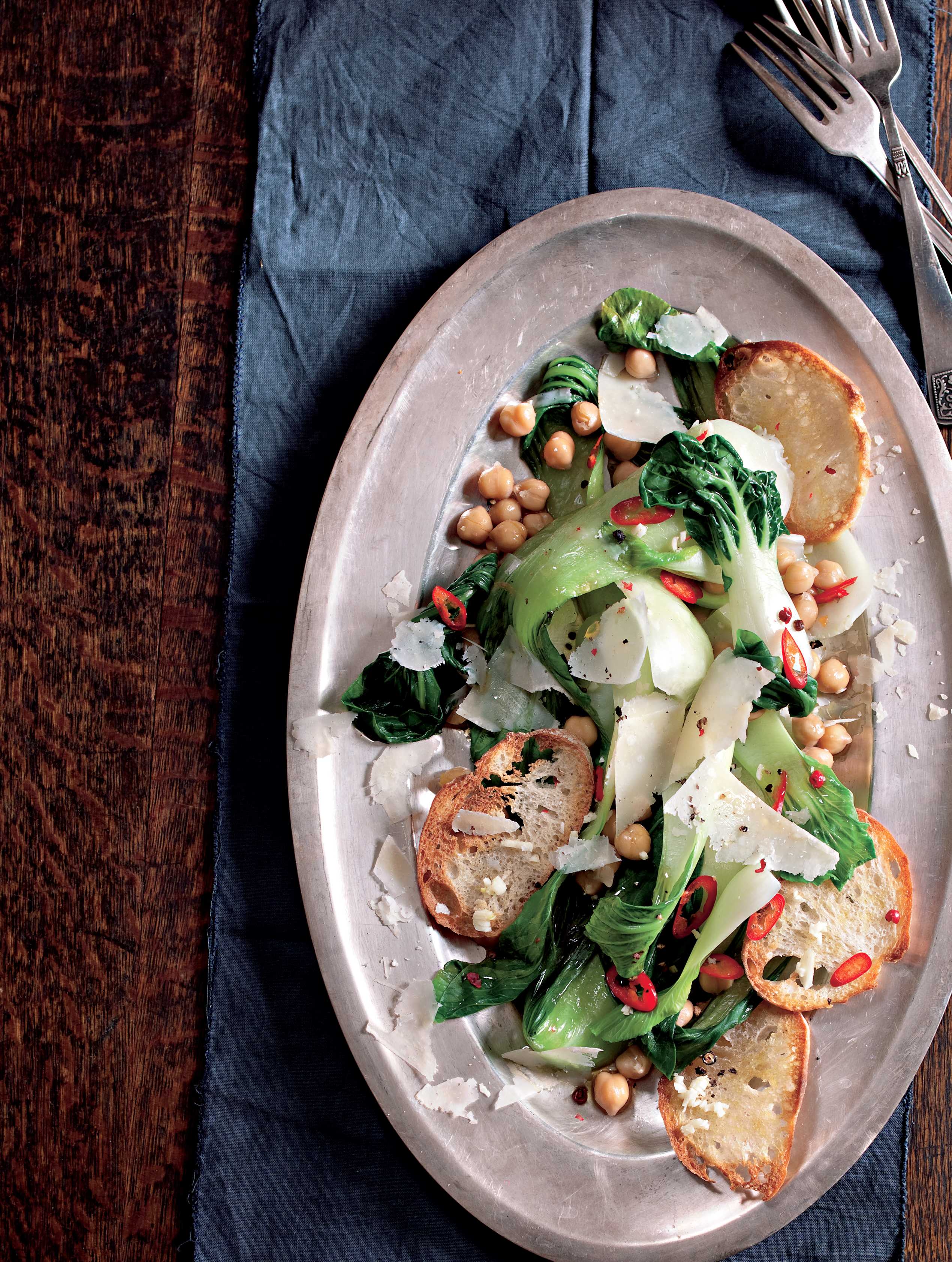 Díky syté cizrně a výraznému sýru vám nikdo nevyčte, že má na talíři jen zelené listí.