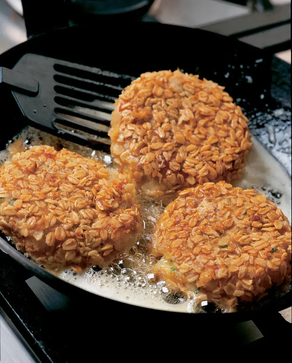 Velké vločky se svou oříškovou konzistencí dodají placičkám křupavost a zázvor se postará o jemně citrusový šmrnc. Všechno dokonale vyváží chladivý dip z okurky a jogurtu.