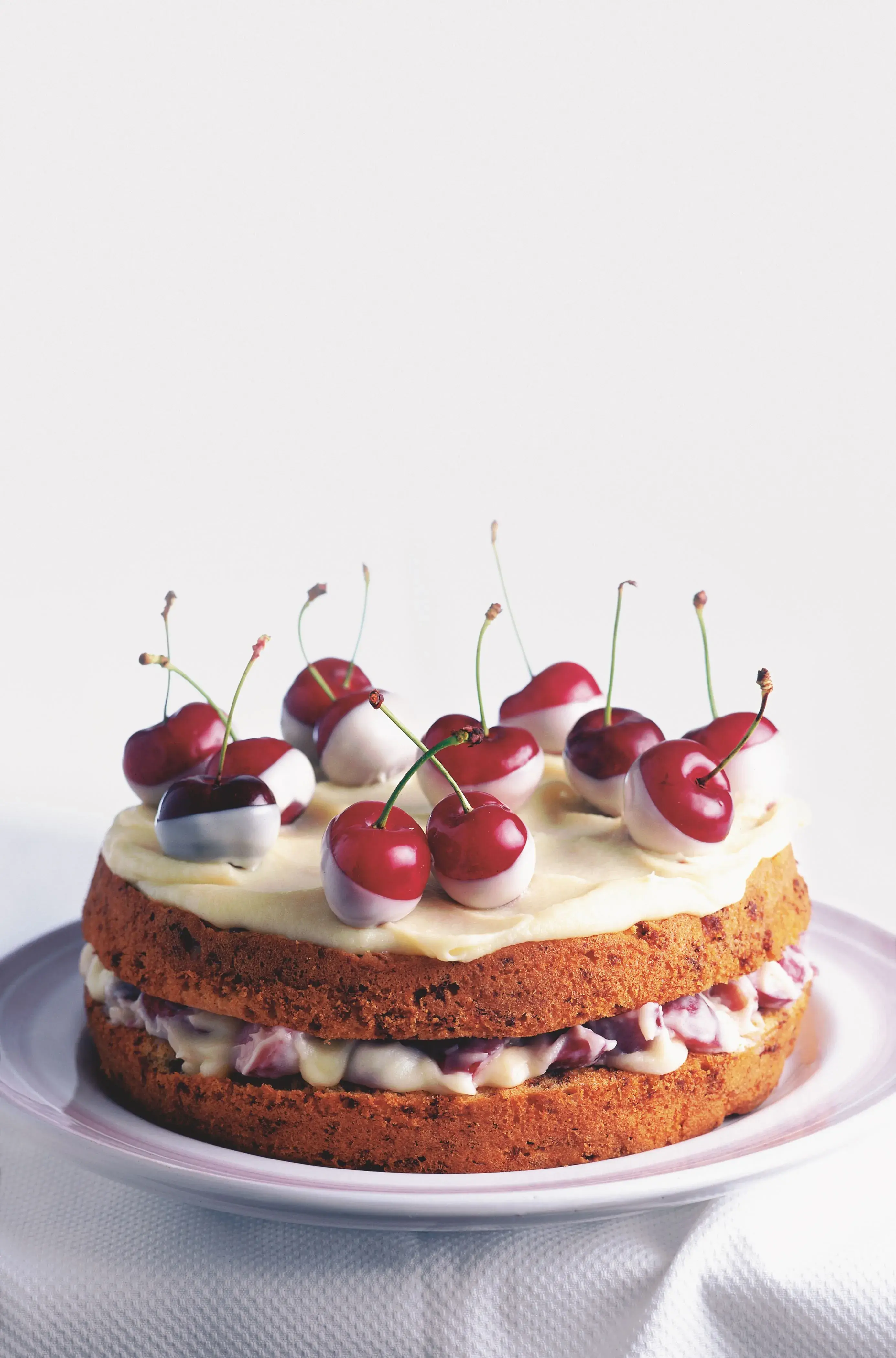 Jemný a rychlý piškotový korpus, lahodný krém ze zakysané smetany a bílé čokolády – co ještě chybí? Třešnička na dortu. Ta dvoubarevná.