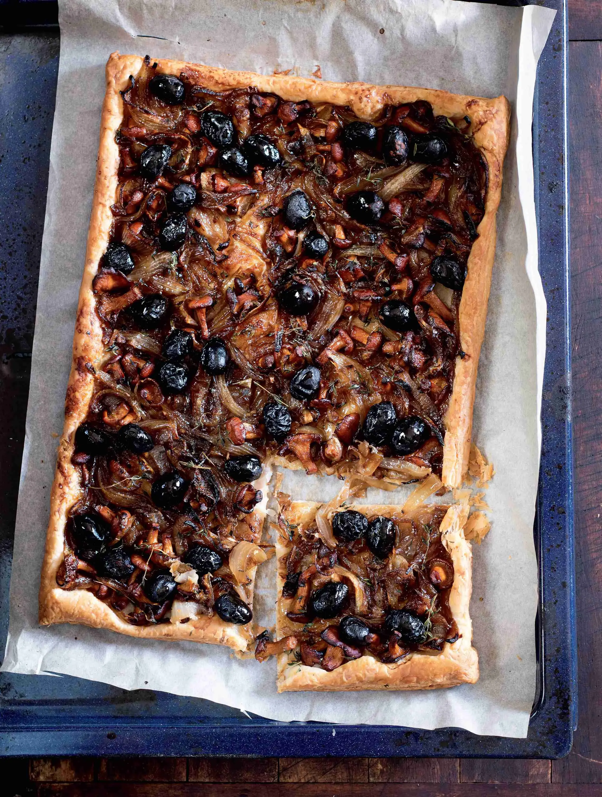 Proslulý francouzský cibulový koláč jsme vylepšili pevnými a křupavými liškami. Výborný je třeba i se špičkami obecnými, které často najdete v městských parcích.