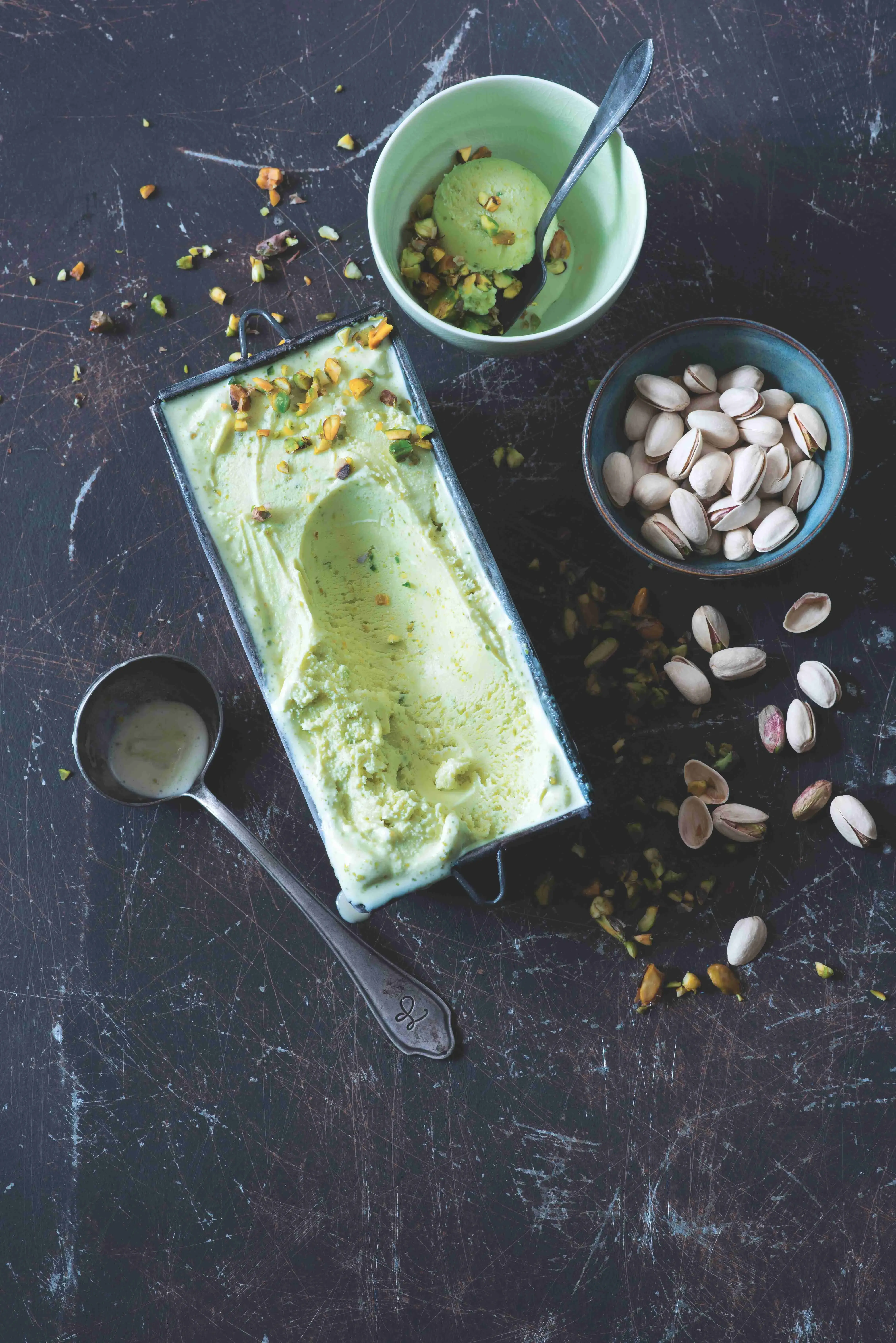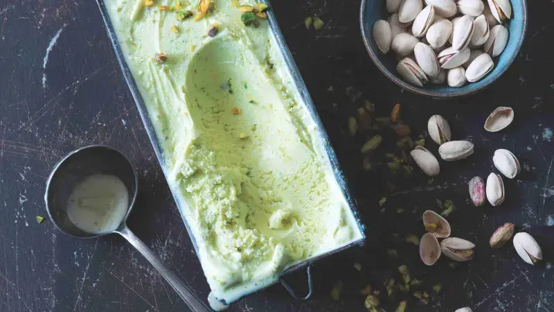 Pistáciová zmrzlina je skutečným přepychem – pistácie nejsou levné a investovat musíte i energii a čas, abyste je zbavili všech slupek. Výsledek ale stojí za to: krémová zmrzlina s jemně zelenou barvou a výrazně oříškovou chutí.