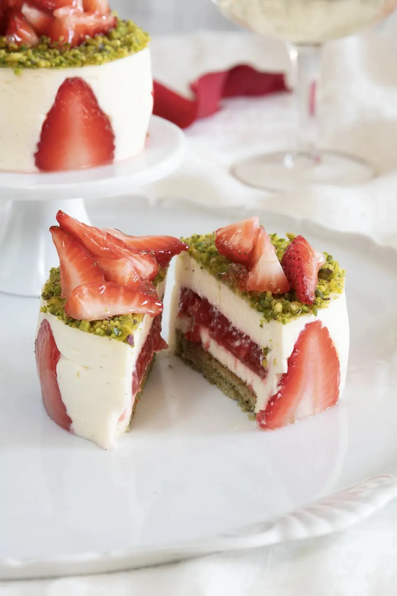 Fraisier je absolutní klasika. Na výrobu je poměrně jednoduchý, a přesto rafinovaný. Pistácie mu sluší stejně jako menší forma. Pistáciové dortíky fraisier se stanou hitem vaší narozeninové oslavy.