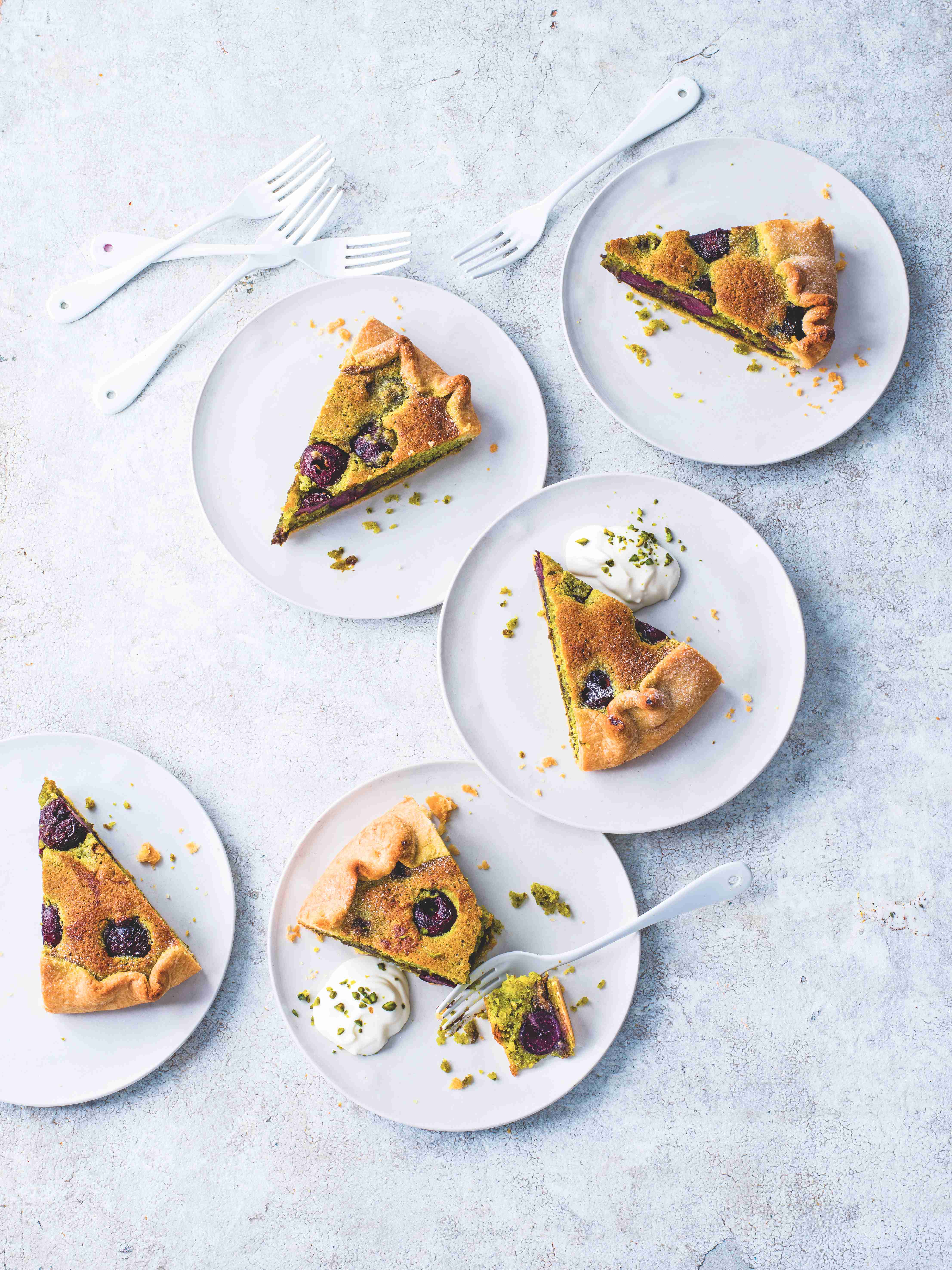 Bakewell tart patří k britské klasice: na křehké těsto tradičně přijde višňový džem, mandlová náplň a poleva. Verze s pistáciemi a třešněmi dodá koláči nejen hezkou barvu, ale i exkluzivní chuť.