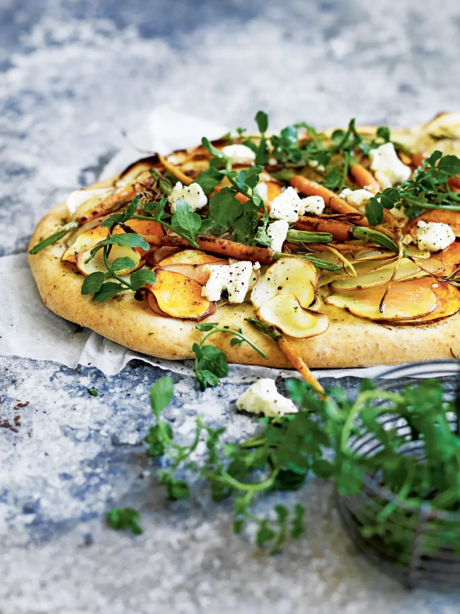 Zapomeňte na klasiku s rajčatovou omáčkou – tahle pizza s pečenou kořenovou zeleninou a sýrem feta je jiná liga. Sladká mrkev, petržel a nové brambory se skvěle doplňují se slaným sýrem feta a křupavým těstem. Ideální volba pro vegetariánskou večeři nebo když máte chuť na něco lehkého, ale plného chuti. A co je nejlepší? Většinu surovin možná už máte doma.
