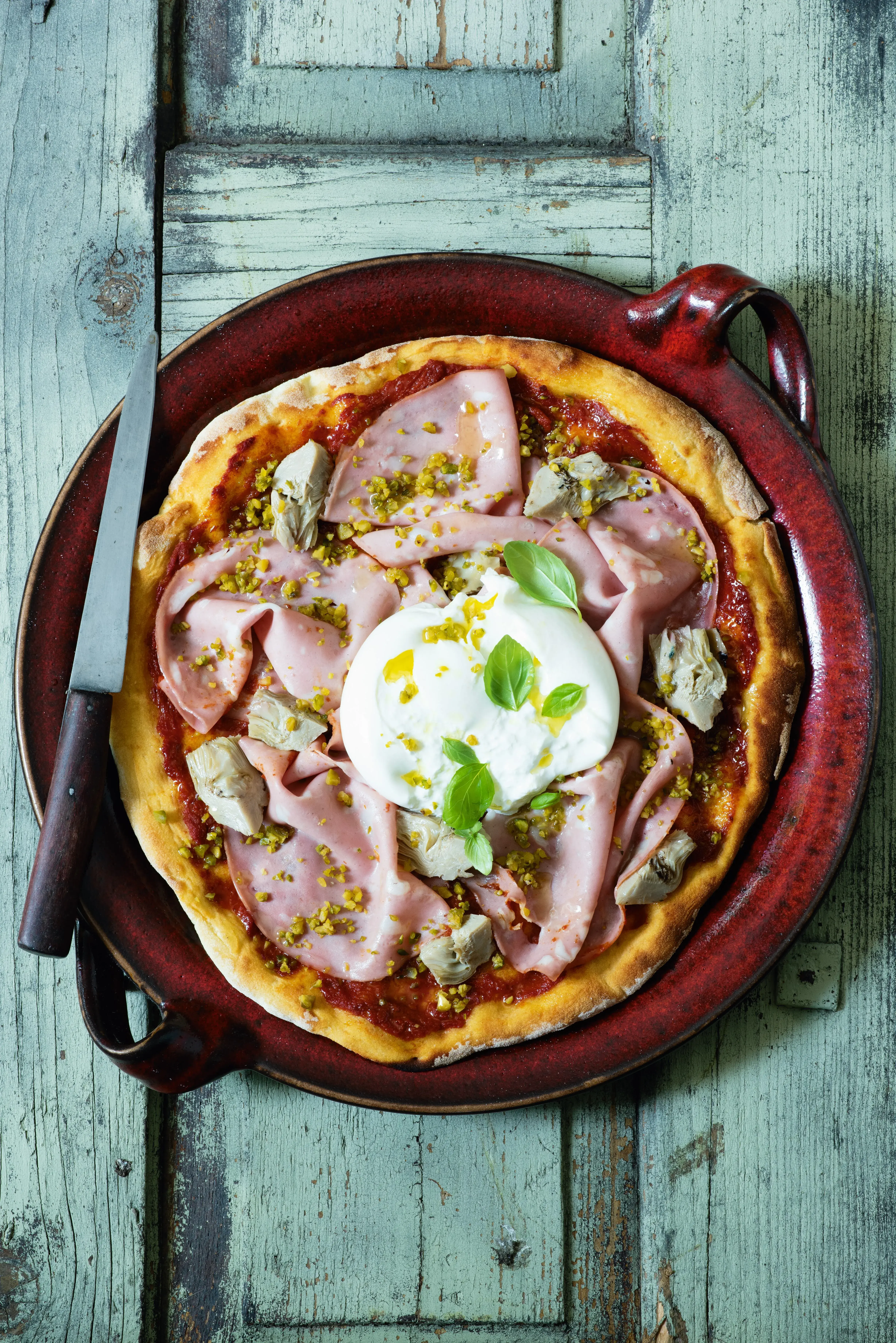 Správná pizza potřebuje čas, ne tolik na vypracování či tvarování těsta, ale hlavně na kynutí. Hotový korpus znatelně urychlí práci, navíc ani nebudete potřebovat vysokou teplotu, které byste bez pece těžko dosáhli.