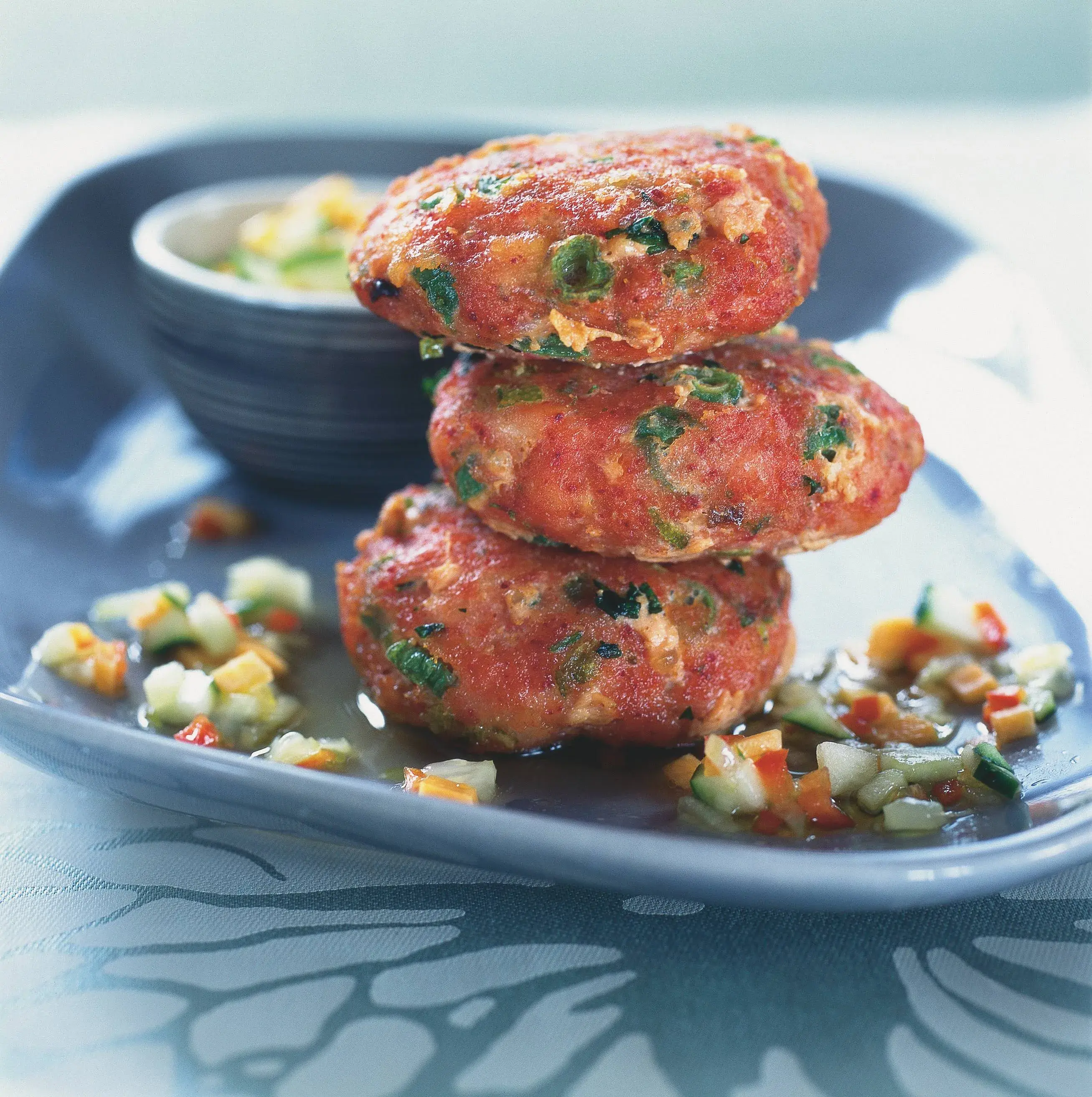 Koláčky z jemného rybího masa získají díky kořeněné kari pastě ostřejší chuť, která skvěle ladí s výraznou omáčkou.