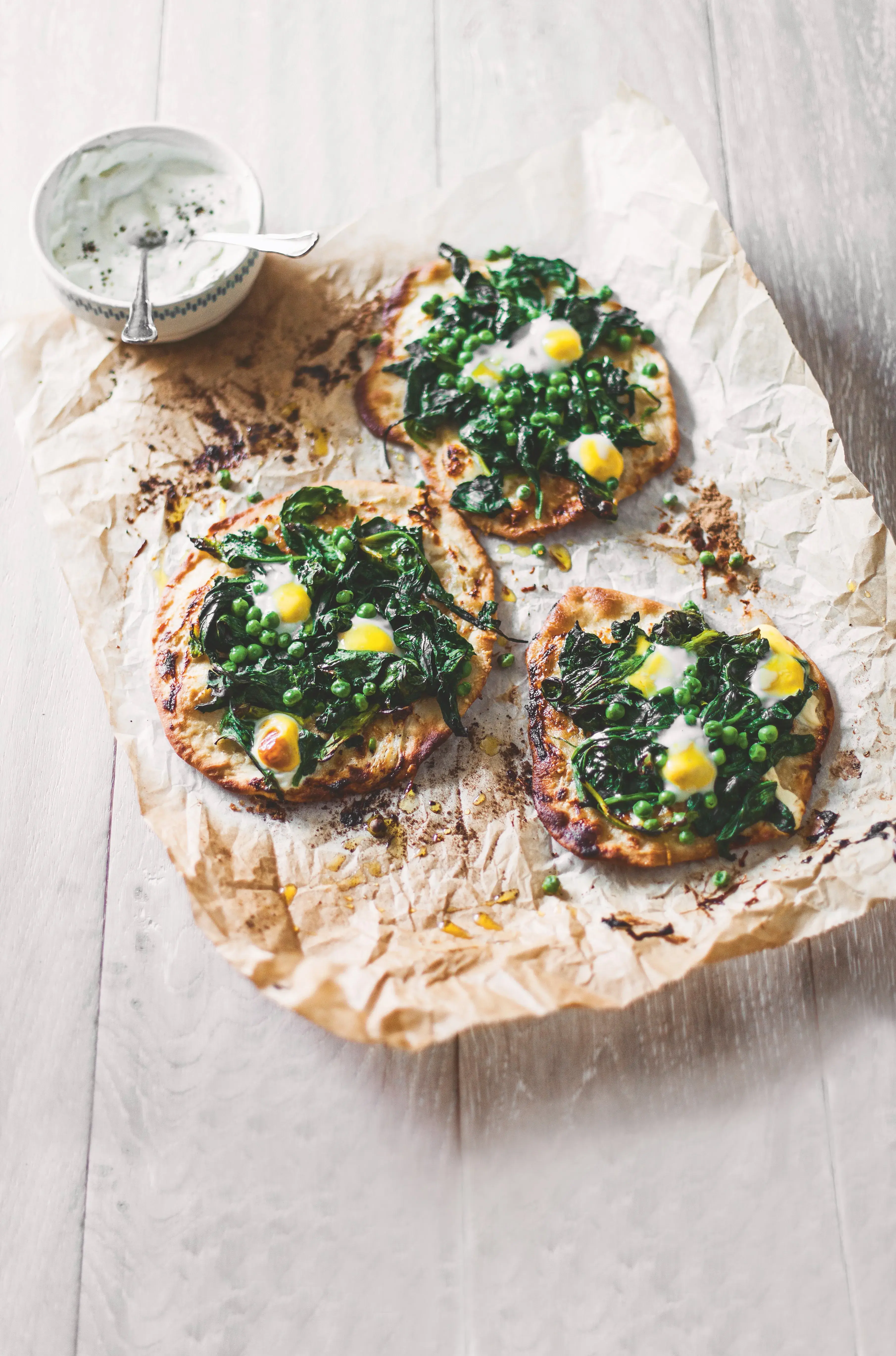 Nevíte, jak zpracovat křepelčí vajíčka? Zkuste tento jednoduchý recept na placky se špenátem, hráškem a vajíčkem. Slaná dobrota na večeři nebo svačinu. A navíc úplně bez masa!