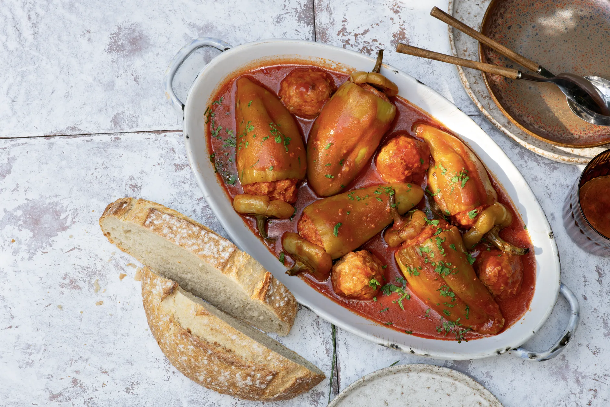 Připravte si plněné papriky v rajské omáčce, které v sobě uchovávají tradici maďarské kuchyně. Dětem můžete servírovat pouze masové kuličky připravené ze zbylé masové směsi. Toto jídlo je nejlepší z maďarských zelených tenkostěnných paprik, které dozrály na slunci.